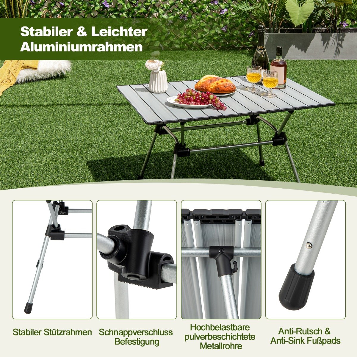 - 1 x Sulankstomas aliuminio kempingo stalas