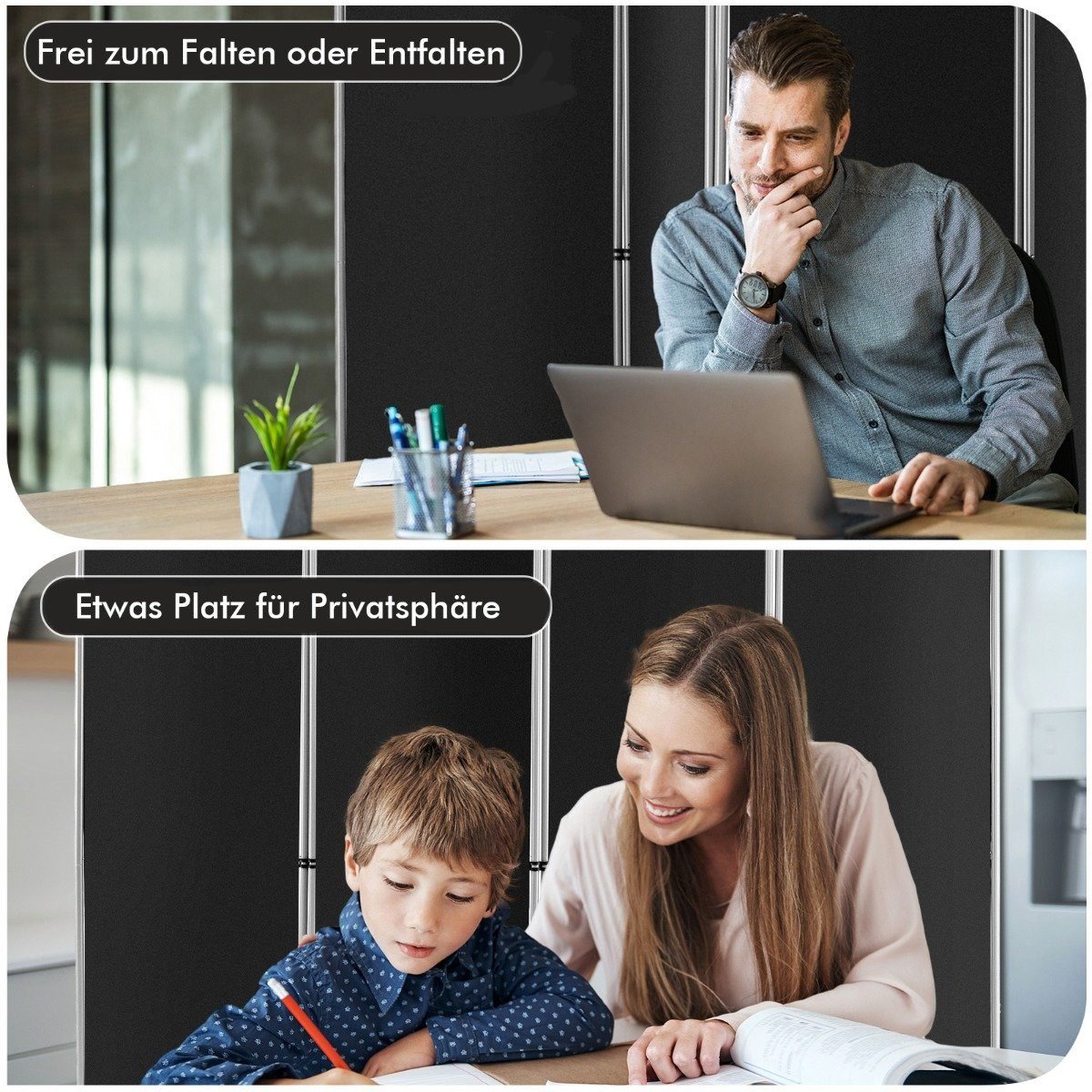Sukurkite atskiras erdves ir padidinkite privatumą savo namuose ar biure su šiuo universaliu, 4 panelių pertvarų komplektu. Nesvarbu, ar jums reikia privačios zonos, ar neutralaus fono vaizdo konferencijoms, šis sprendimas lengvai pritaikomas pagal jūsų poreikius.