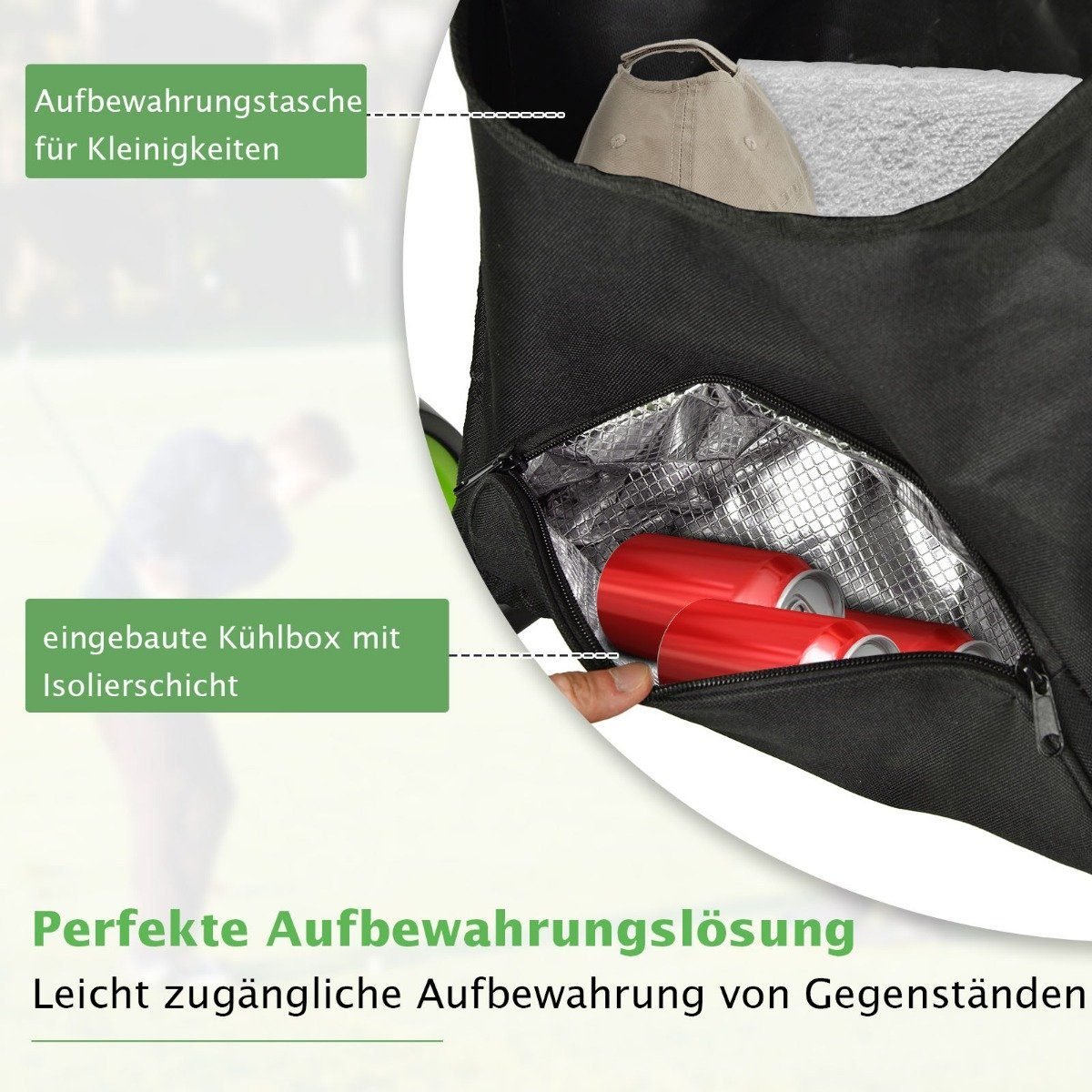 - Papildoma laikymo vieta jūsų golfo reikmenims.