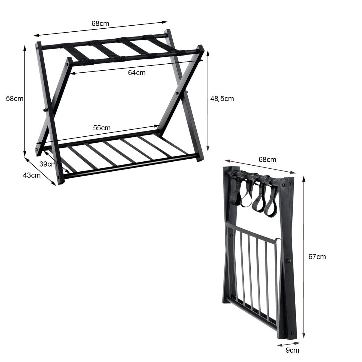 Šis sulankstomas bagažo stovas – puikus sprendimas jūsų namams ar viešbučio kambariui. Jis leidžia patogiai laikyti ir tvarkingai sudėti kelioninius lagaminus, rankines ar kitus daiktus. Tvirta konstrukcija užtikrina ilgaamžiškumą ir stabilumą.