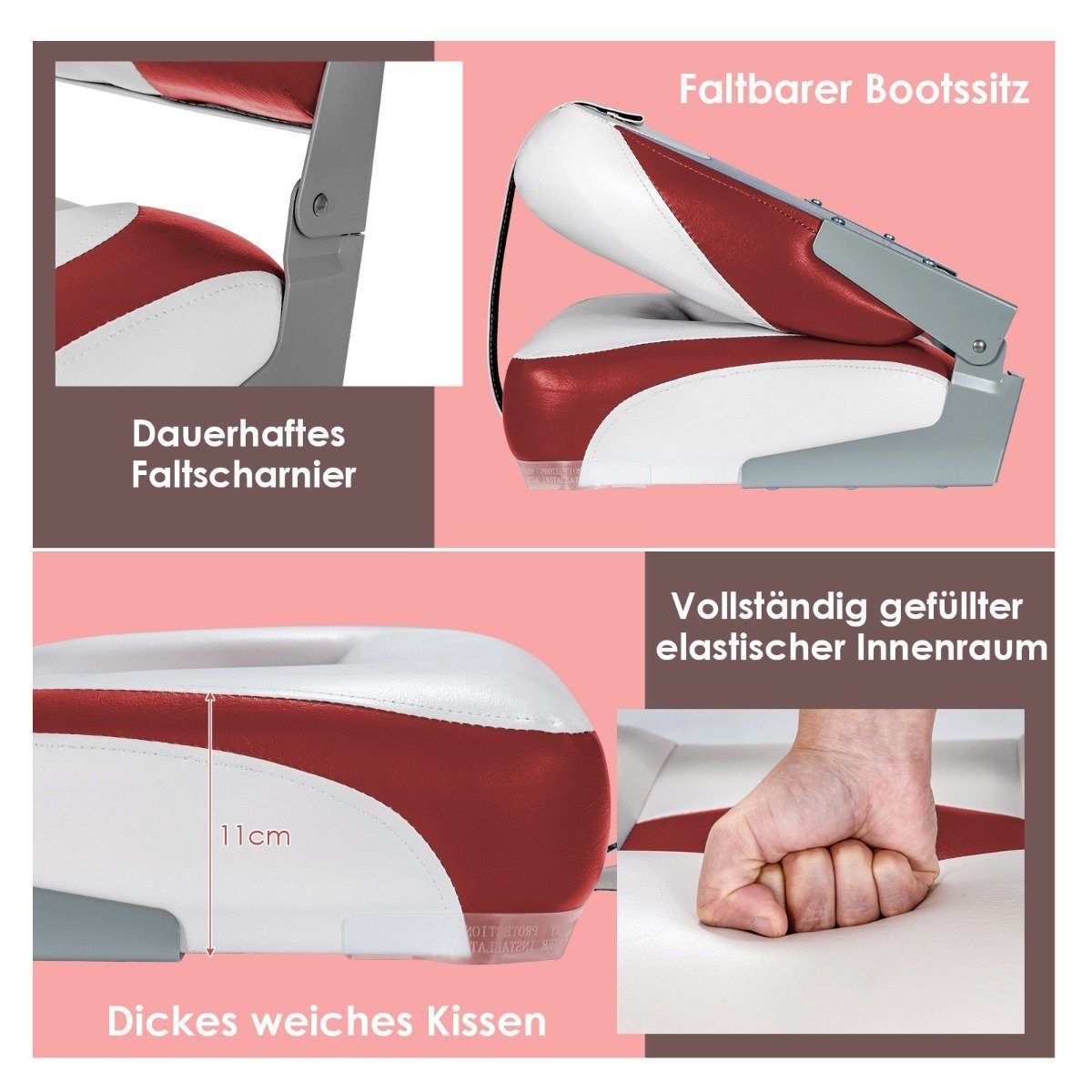 Sulankstomas laivų sėdynių komplektas su 11 cm paminkštinimu (Raudona)