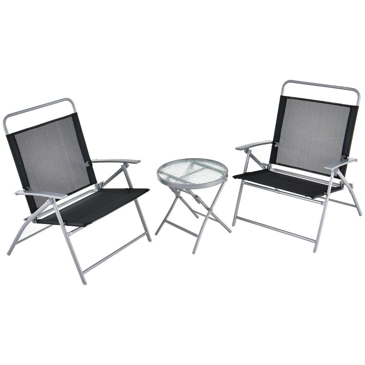 Sulankstomas lauko baldų komplektas su dviem kėdėm ir staliuku (Juoda ir sidabrinė)