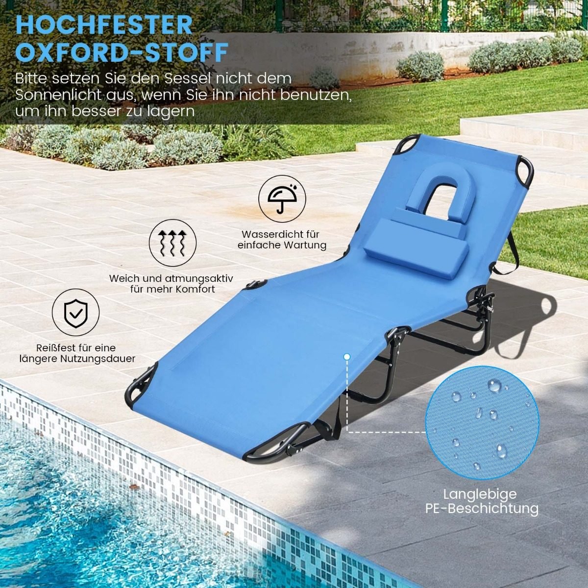 Sulankstomas lauko gultas su veido anga (Mėlyna)