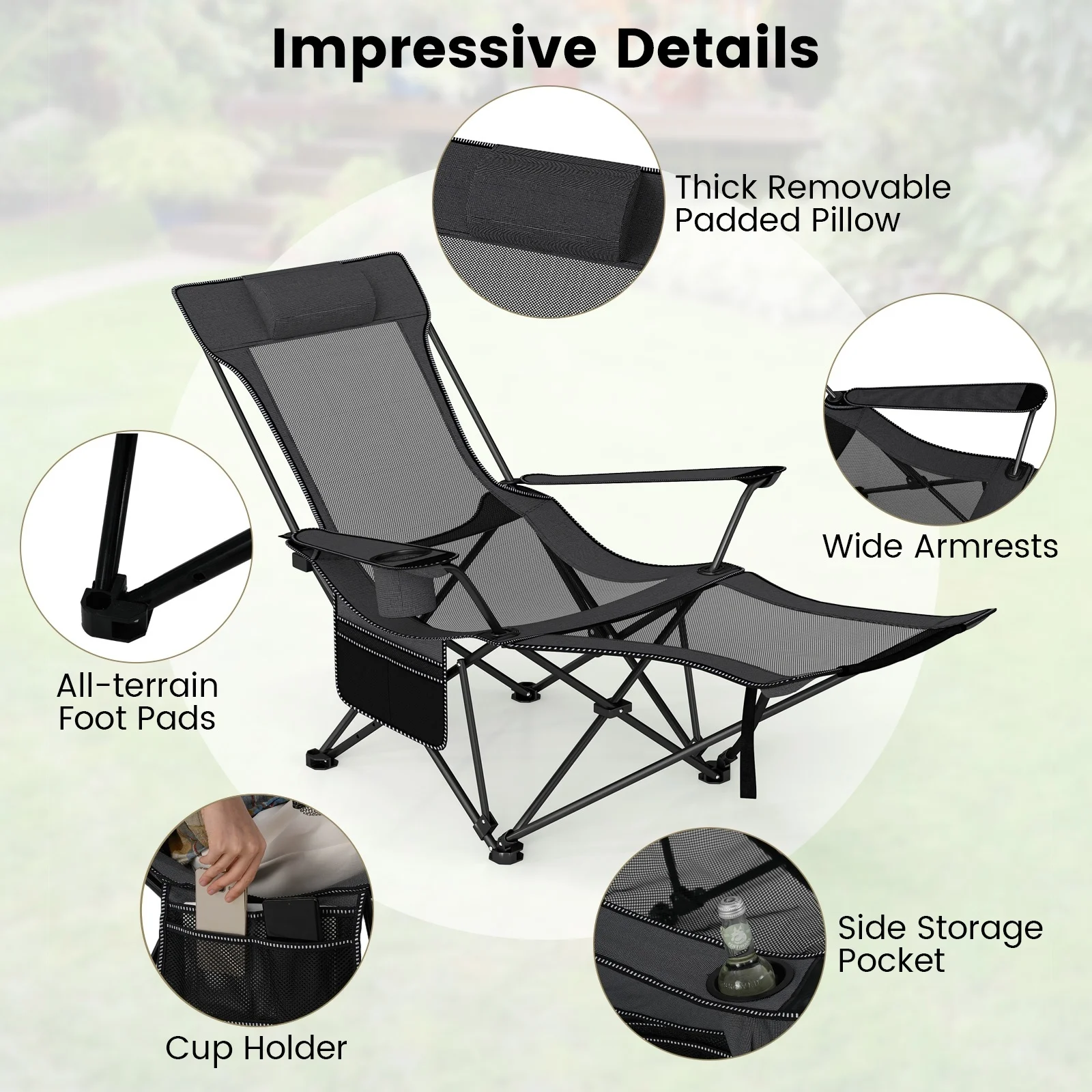 Sulankstomas lauko krėslas su atlenkiama atrama ir kojų atrama (Pilka)