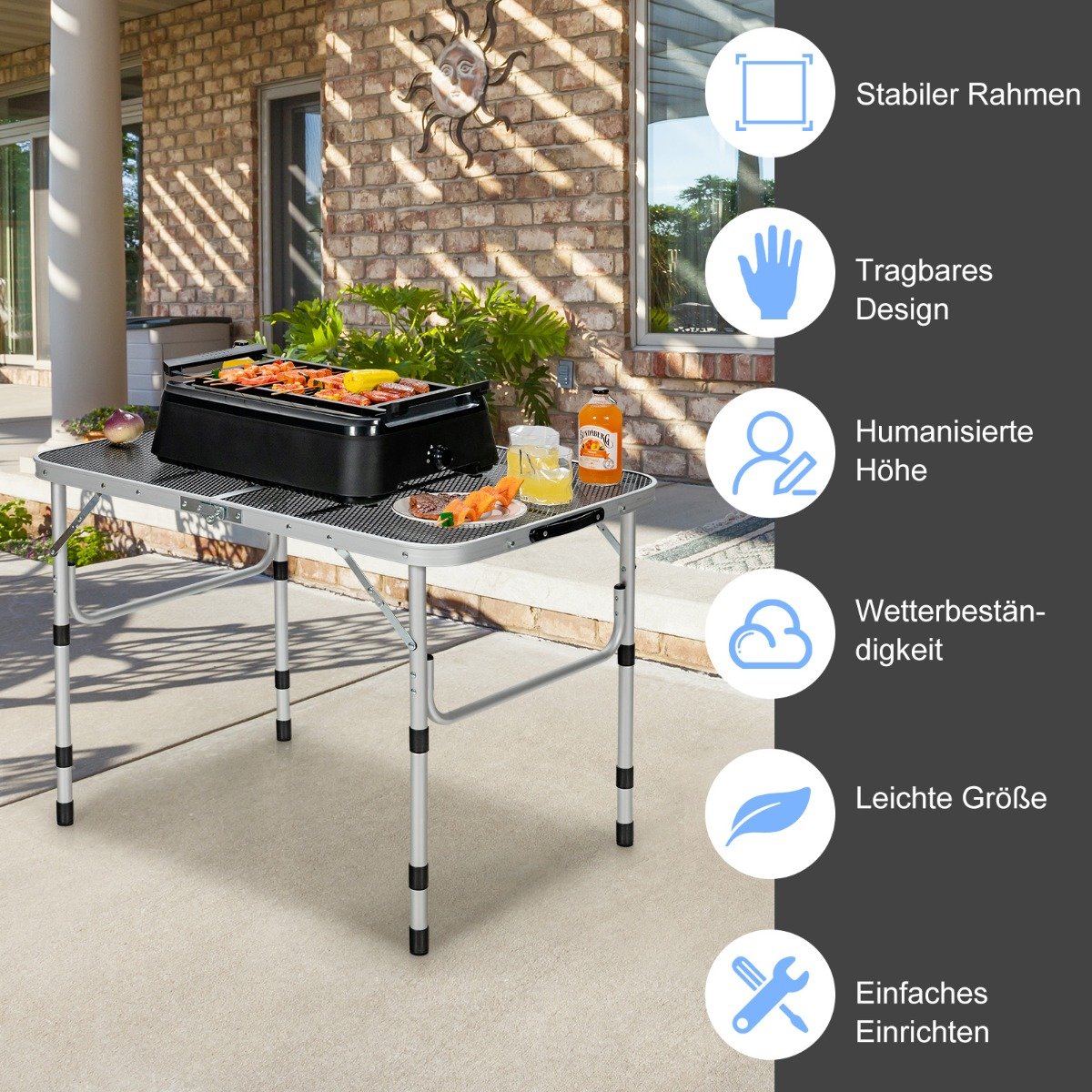 Sukurkite patogią erdvę gamtoje su šiuo funkcionaliu sulankstomu lauko stalu. Jo tvirta konstrukcija ir apgalvotas dizainas užtikrina stabilumą ir ilgaamžiškumą įvairiomis progomis. Idealiai tinka stovyklavimui, iškyloms ar tiesiog jaukiam vakarui sode.