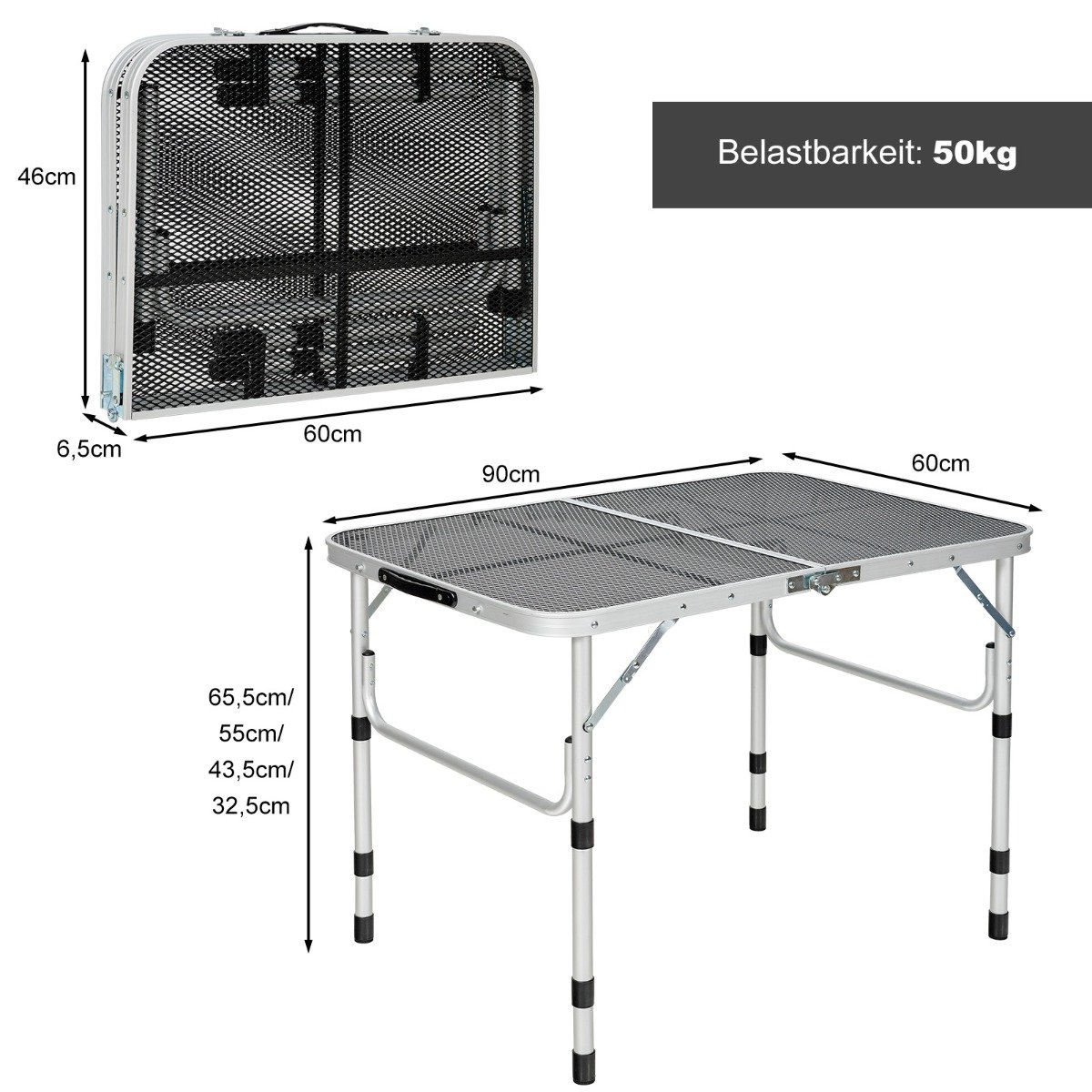 Sulankstomas lauko stalas su grotelėmis ir aliuminio rėmu (Sidabrinė)