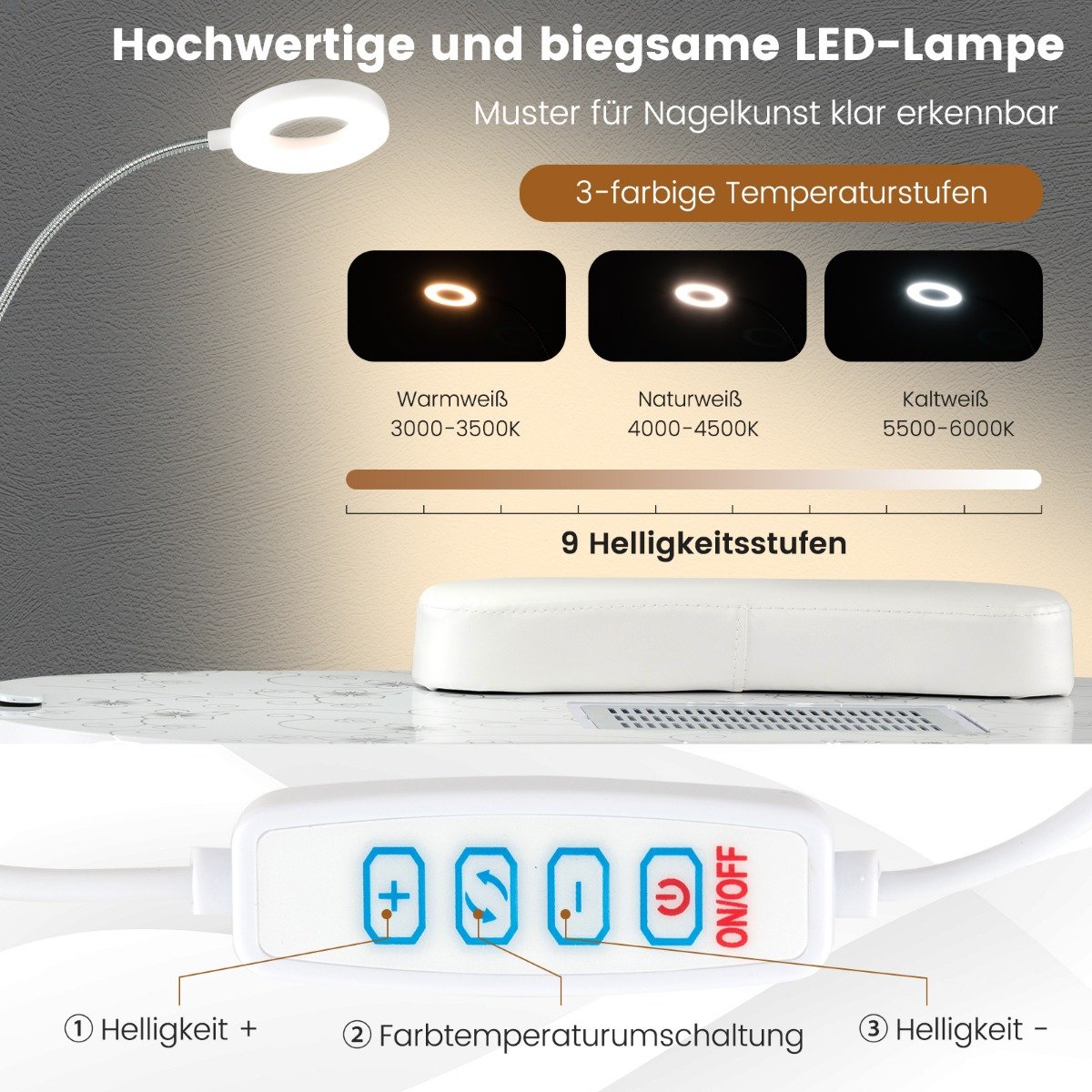 Sulankstomas manikiūro staliukas su dulkių siurbliu ir LED lempute (Balta)