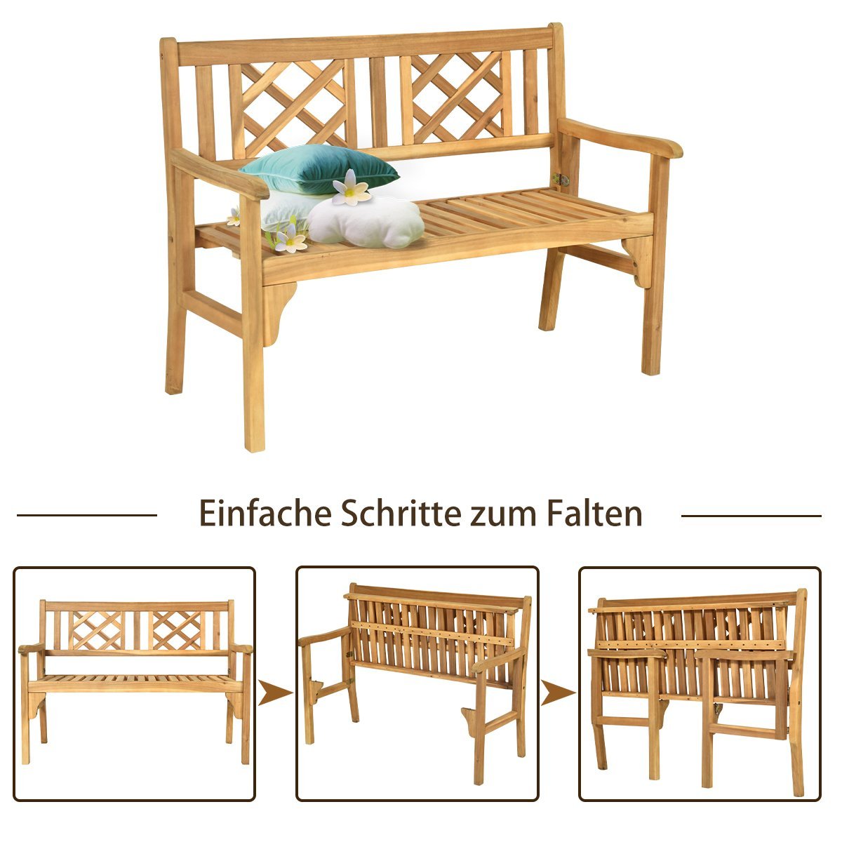 Sulankstomas medinis sodo suoliukas 120 cm (Natūrali)