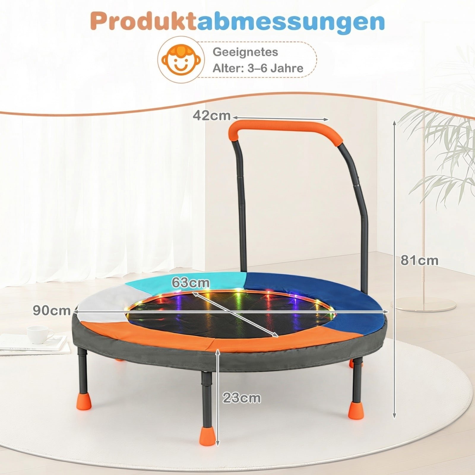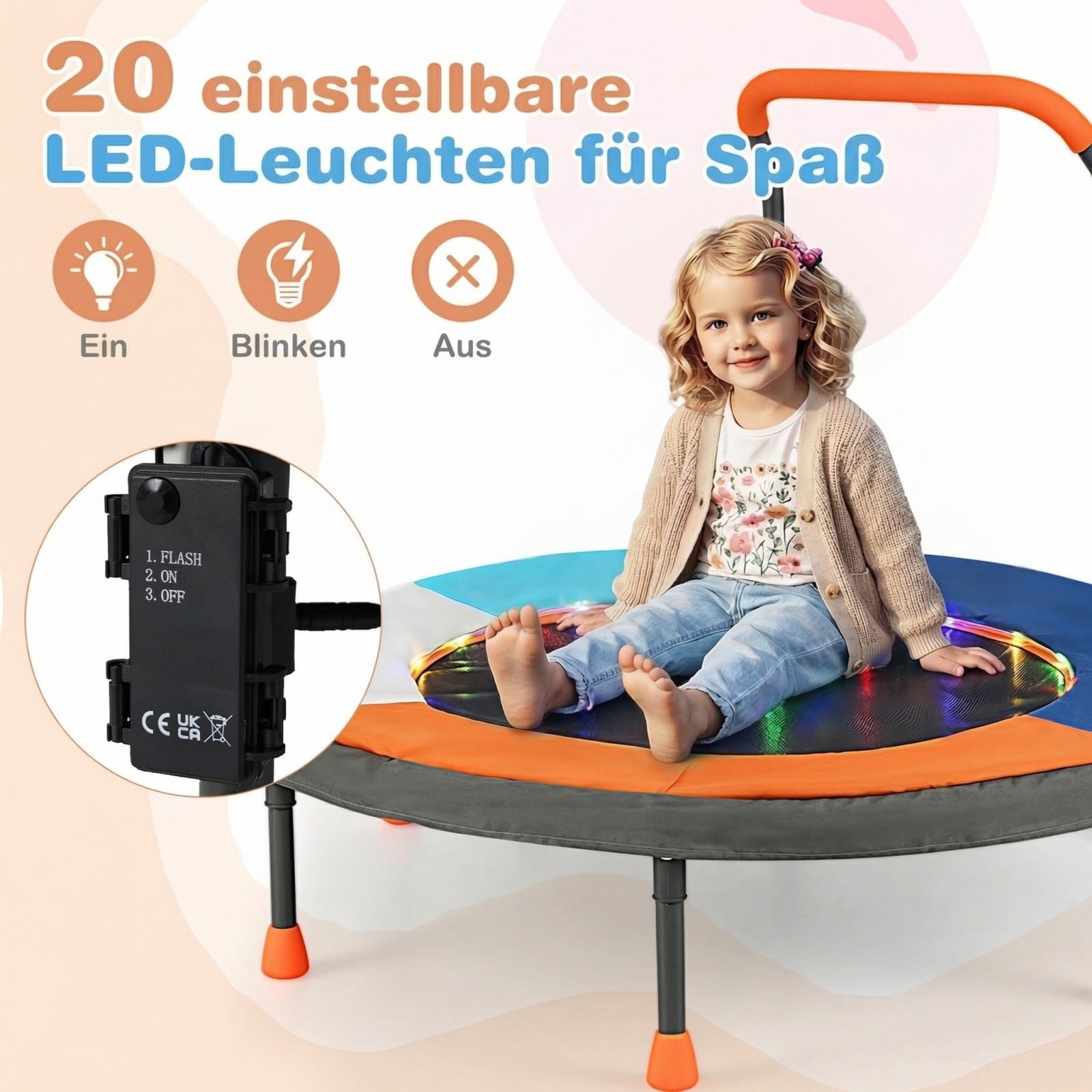 Padovanokite savo vaikams džiaugsmingas ir aktyvias akimirkas! Šis mini batutas, sukurtas specialiai mažiesiems, stebina spalvingais LED žibintais ir inovatyvia konstrukcija be spyruoklių, užtikrinančia saugesnį ir tyliau veikiantį šokinėjimą. Tvirtas rėmas ir neslystančios kojelės garantuoja išskirtinį stabilumą, o patogus sulankstomas dizainas leidžia jį lengvai laikyti ir transportuoti. Puikiai tinka naudoti tiek viduje, tiek lauke, sukuriant vaikams saugią ir džiugią erdvę linksmybėms.