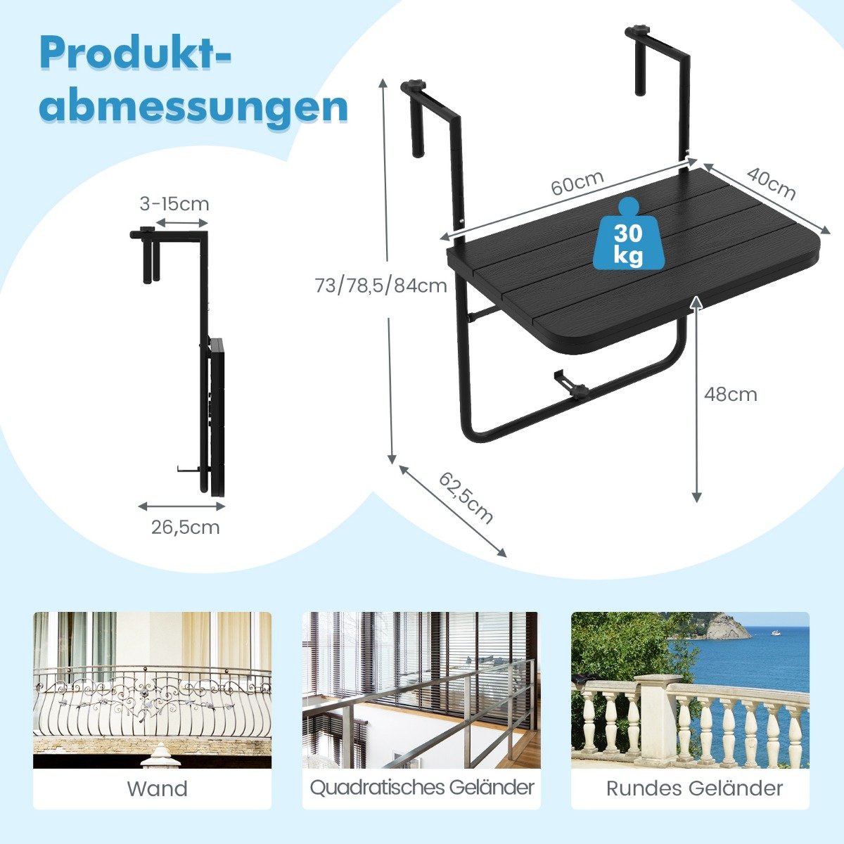 Sulankstomas pakabinamas balkono stalas (Juoda)
