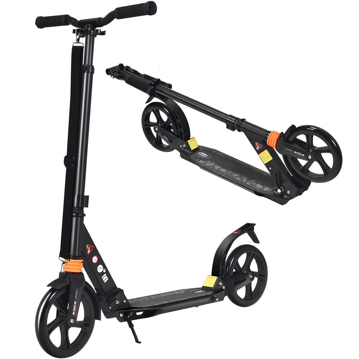 Sulankstomas paspirtukas su reguliuojamu vairu ir amortizacija (Juoda)