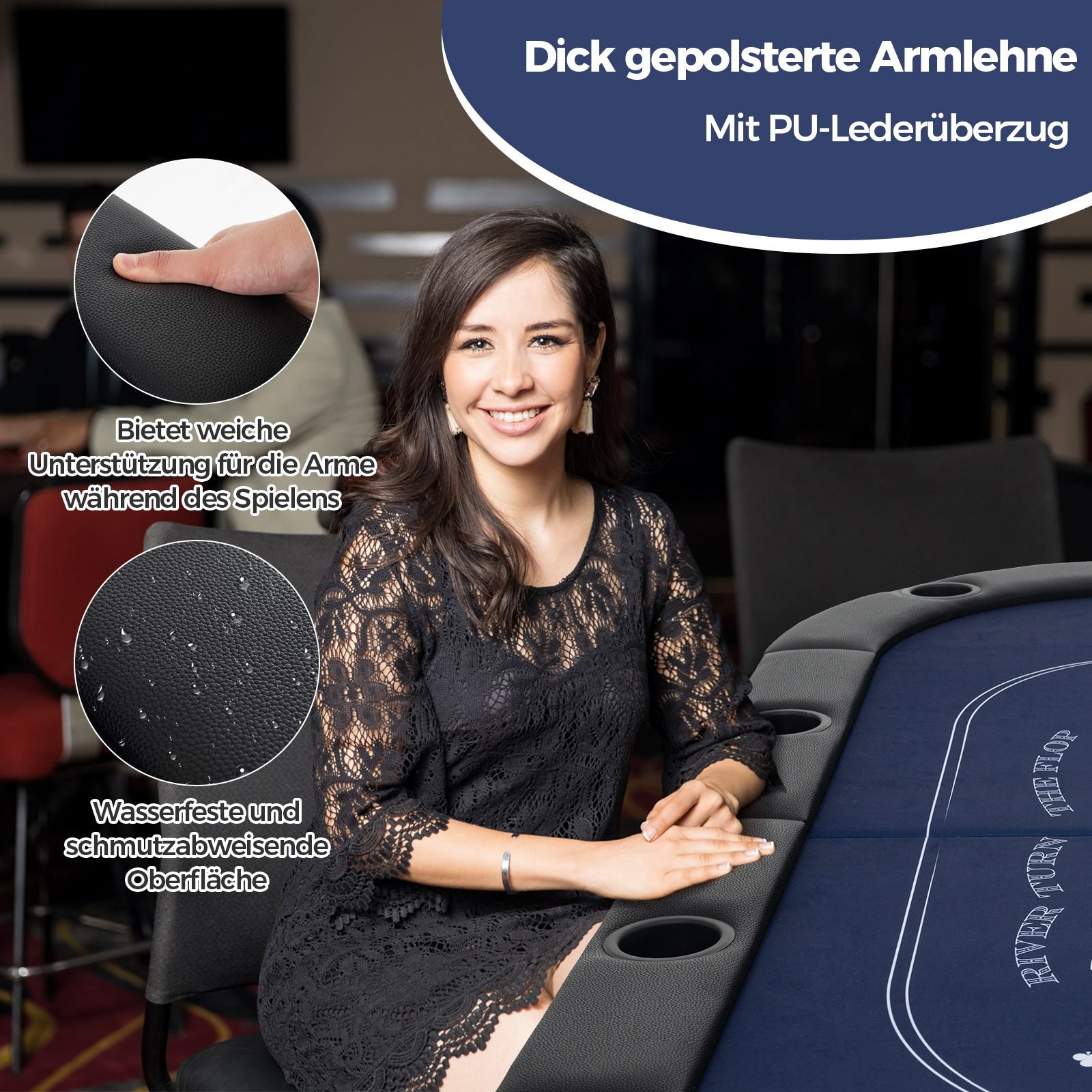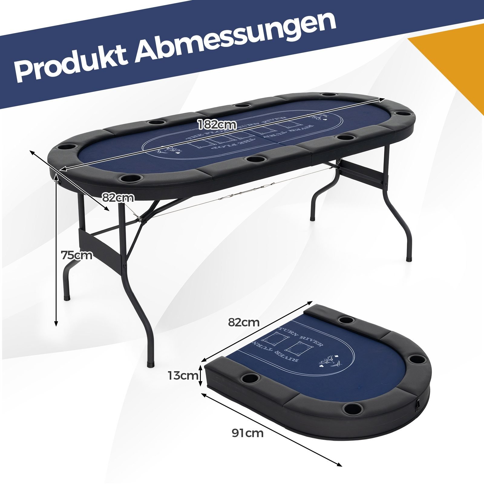 Sulankstomas pokerio stalas 8 žaidėjams su puodelių laikikliais (Mėlyna)
