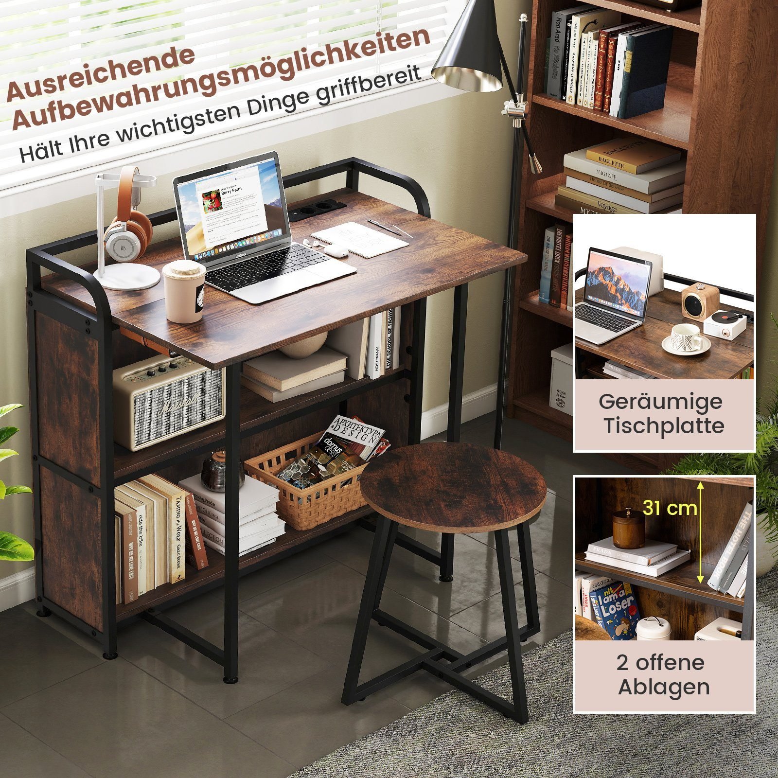Sulankstomas rašomasis stalas su integruota elektros stotele ir kėdute (Ruda)