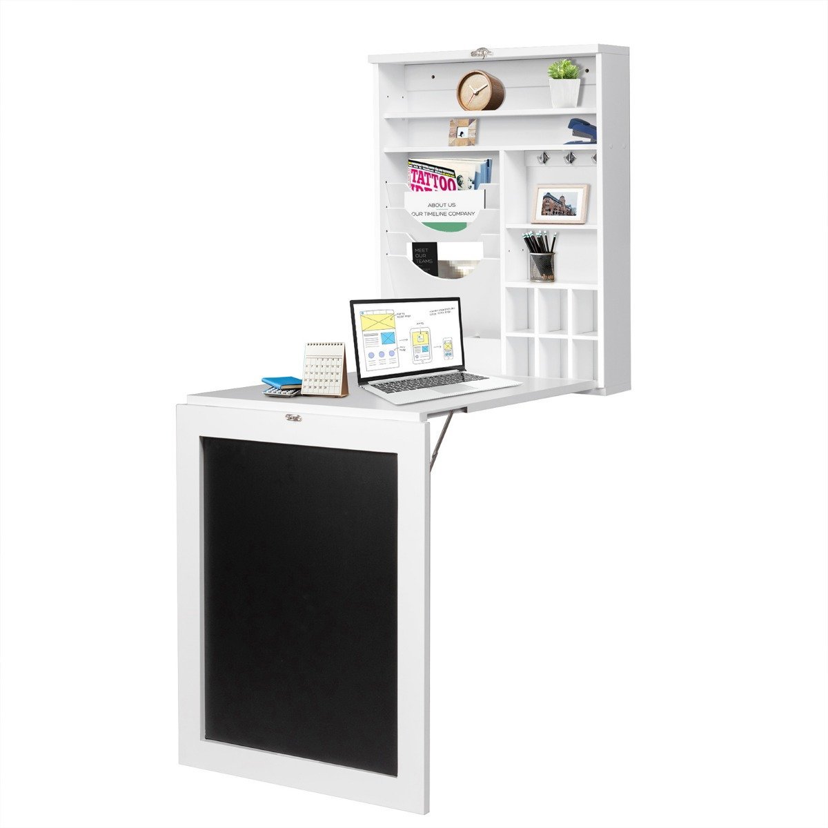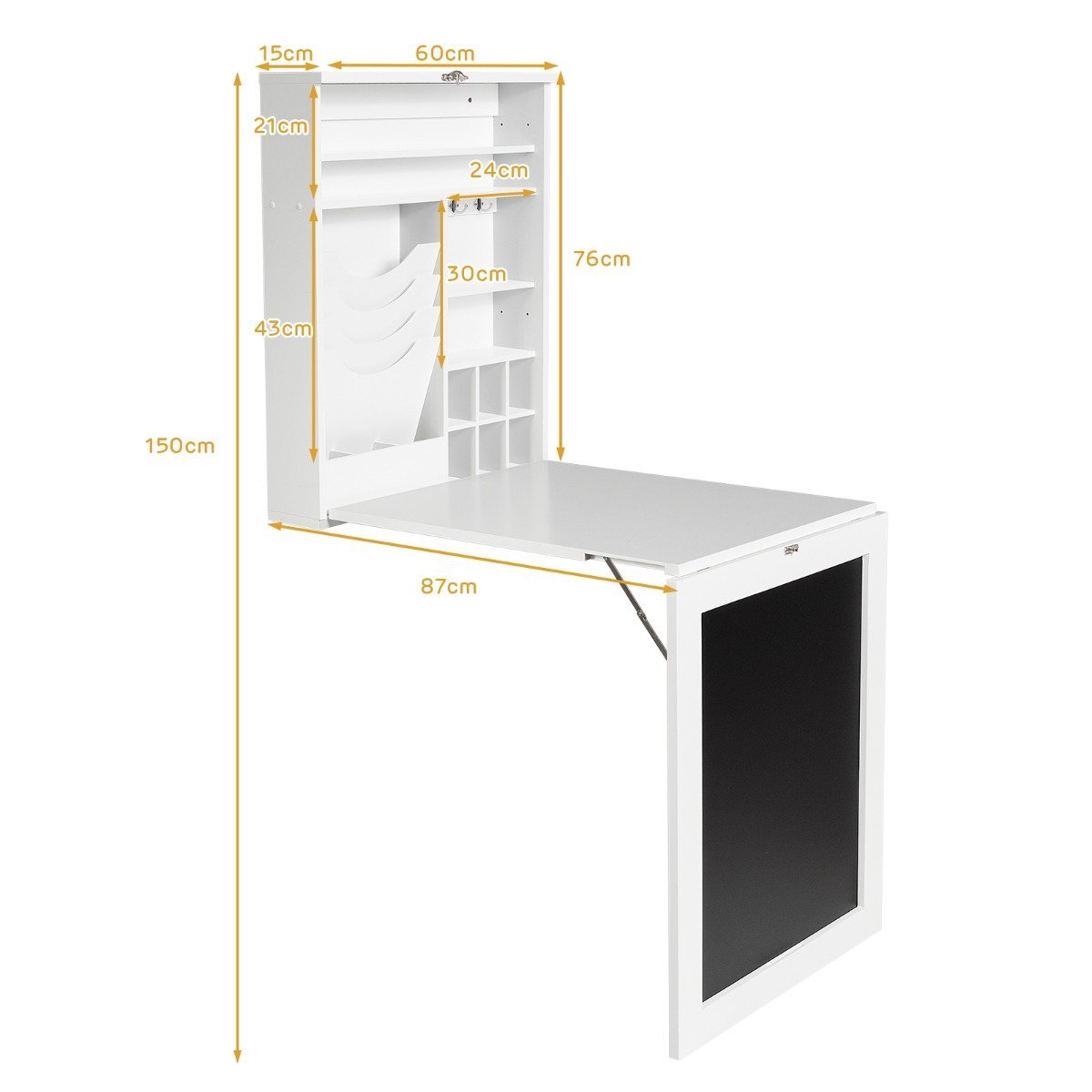 Ieškote vietą taupančio sprendimo savo namams? Šis prie sienos tvirtinamas sulankstomas stalčius optimaliai išnaudoją turimą erdvę. Lygus paviršius patogus darbui ir valgymui. Stalčiuose galėsite tvarkingai laikyti įvairius daiktus, o lentynos yra reguliuojamos. Dėl tvirtinimo prie sienos jis puikiai tinka ir mažiems kambariams – neužima grindų ploto ir efektyviai išnaudoja turimą erdvę. Kai nenaudojamas, stalčius lengvai sulankstomas iki kompaktiško dydžio, taip dar labiau taupydamas vietą. Elegantiškas ir klasikinis dizainas pavers šį stalčių puikiu jūsų namų interjero akcentu.