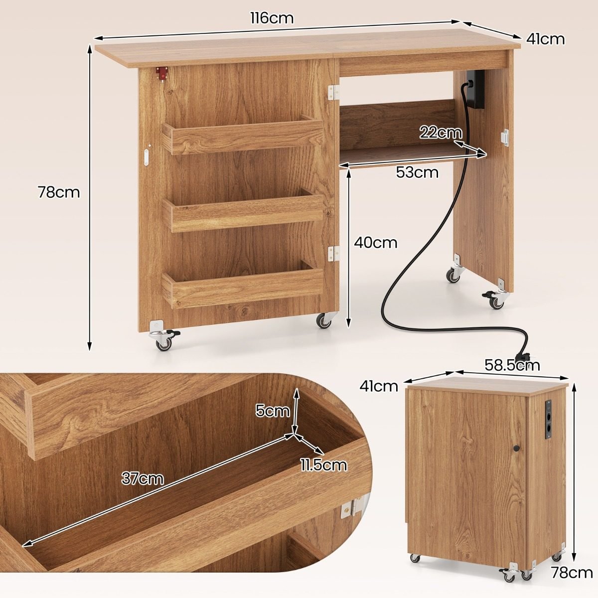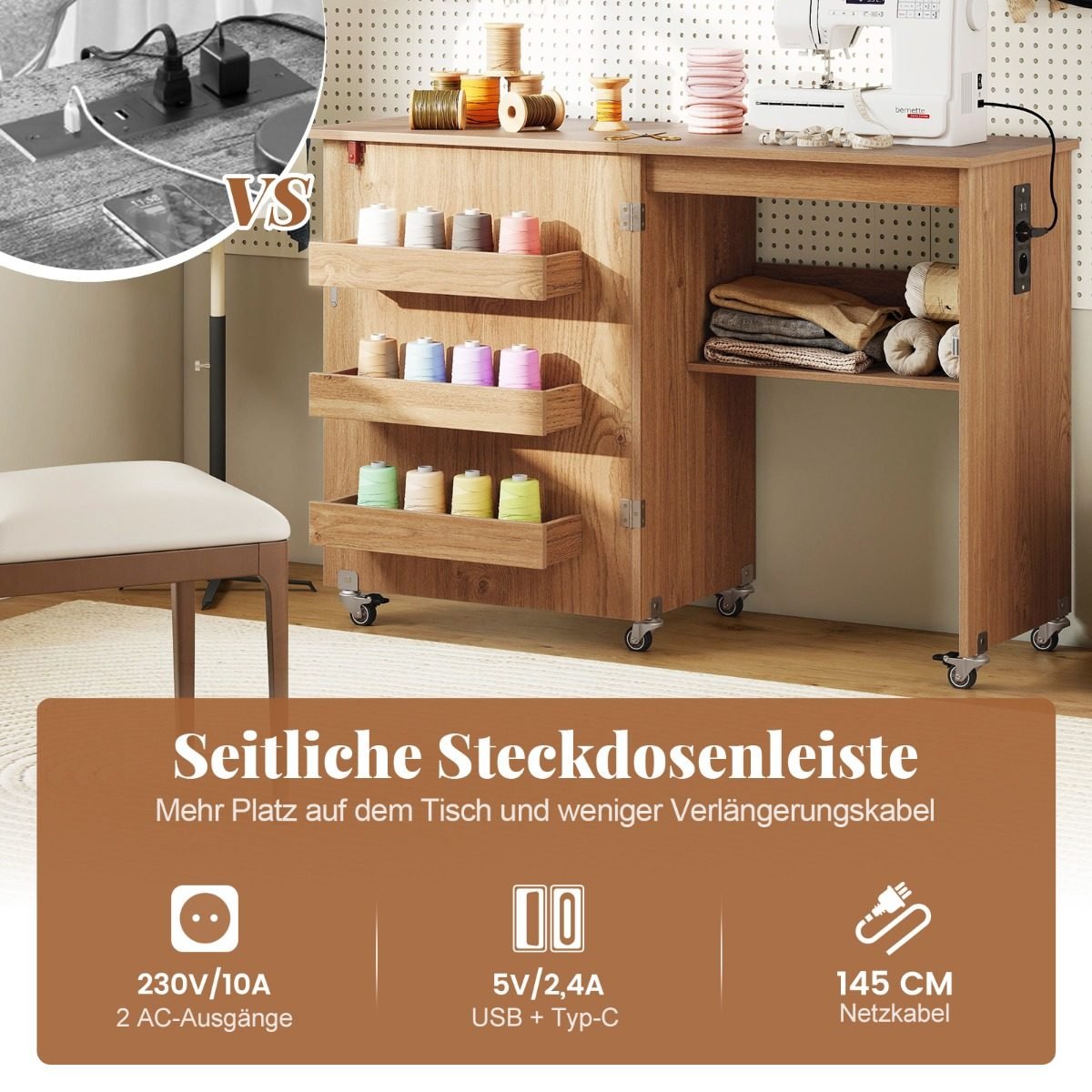 Sulankstomas siuvimo stalas su integruota įkrovimo stotele (Natūrali)