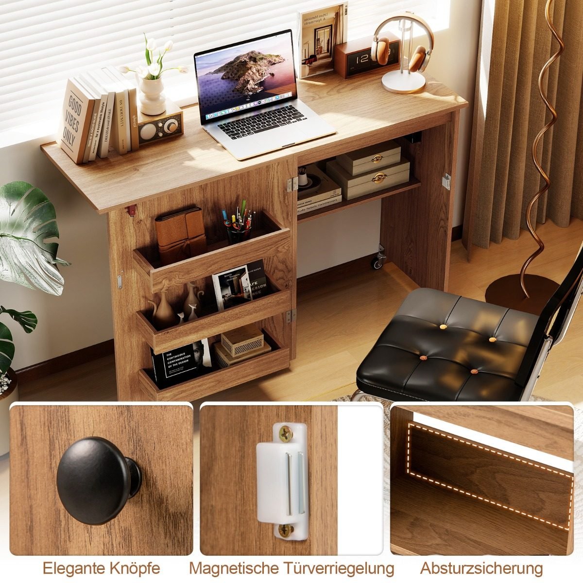 - Daugiafunkcis 2-in-1 dizainas: lengvai transformuojamas iš didelio darbo paviršiaus į kompaktišką spintelę.
