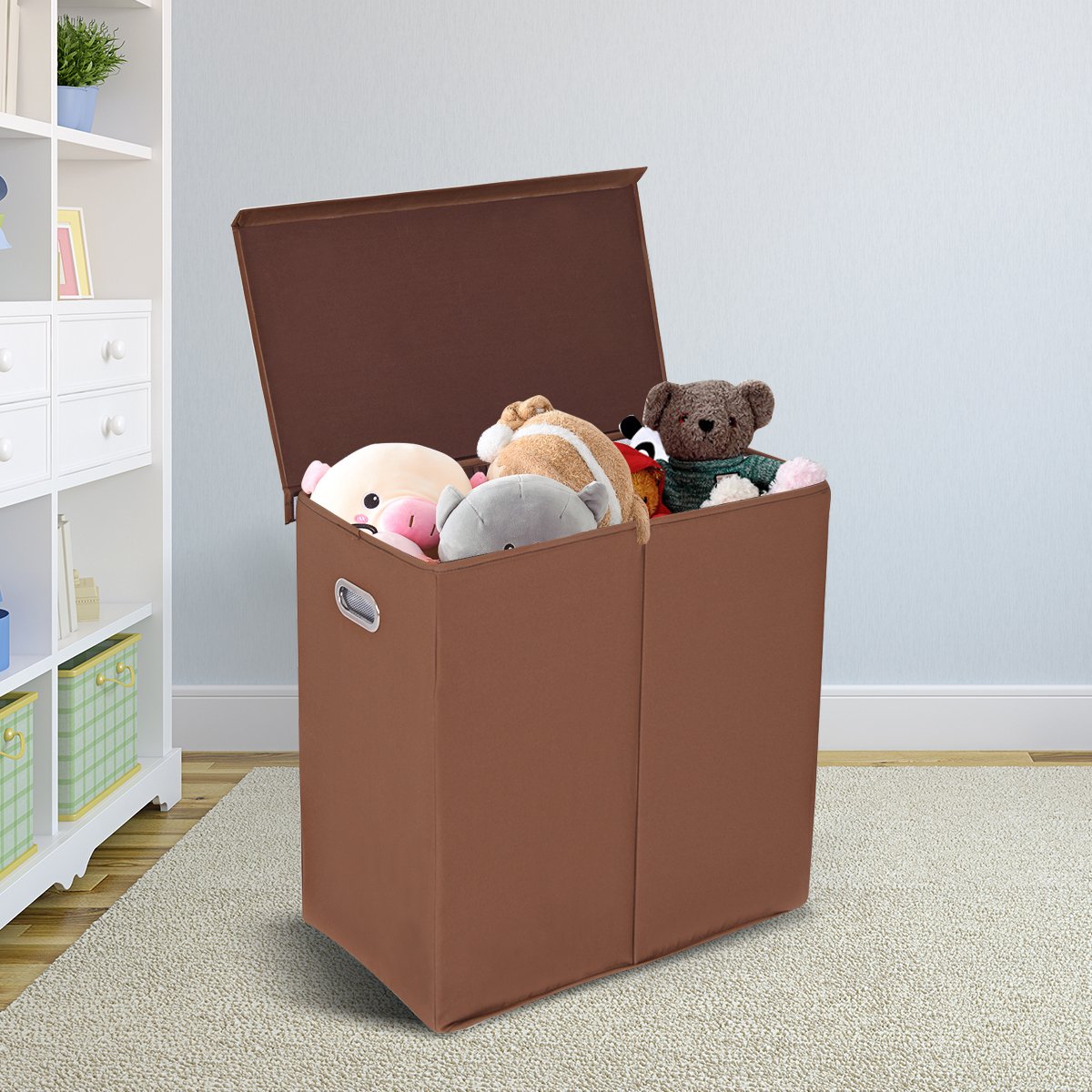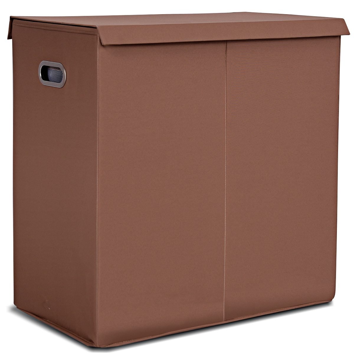 Sulankstomas skalbinių krepšys su dviem skyriais ir dangčiu (Ruda)