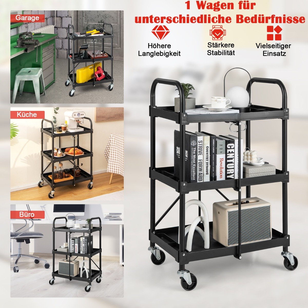 Šis 3 pakopų vežimėlis su ratukais yra puikus sprendimas įrankiams, maisto produktams ar kitiems daiktams laikyti ir transportuoti. Dėl tvirtos konstrukcijos ir patogaus dizaino jis taps nepakeičiamu pagalbininku jūsų dirbtuvėse, virtuvėje ar bet kurioje kitoje namų erdvėje. Sulankstomas dizainas leidžia lengvai sutaupyti vietos, kai vežimėlis nenaudojamas.
