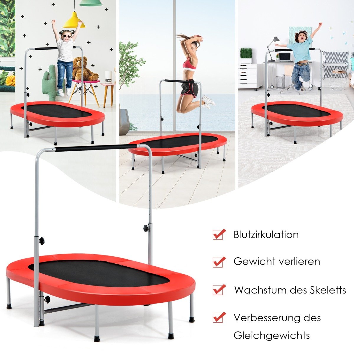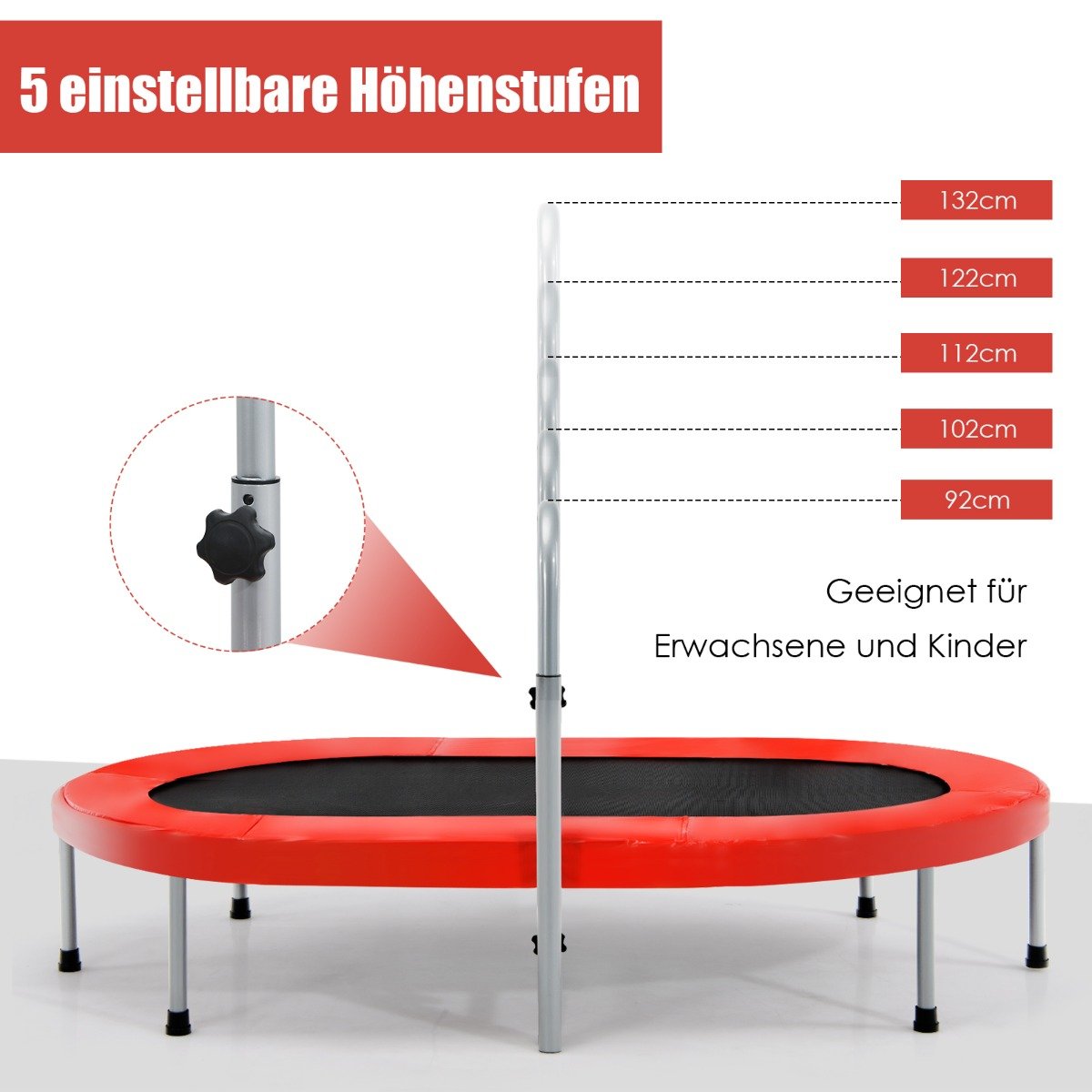 Sulankstomas treniruočių batutas su reguliuojama rankena (Raudona)