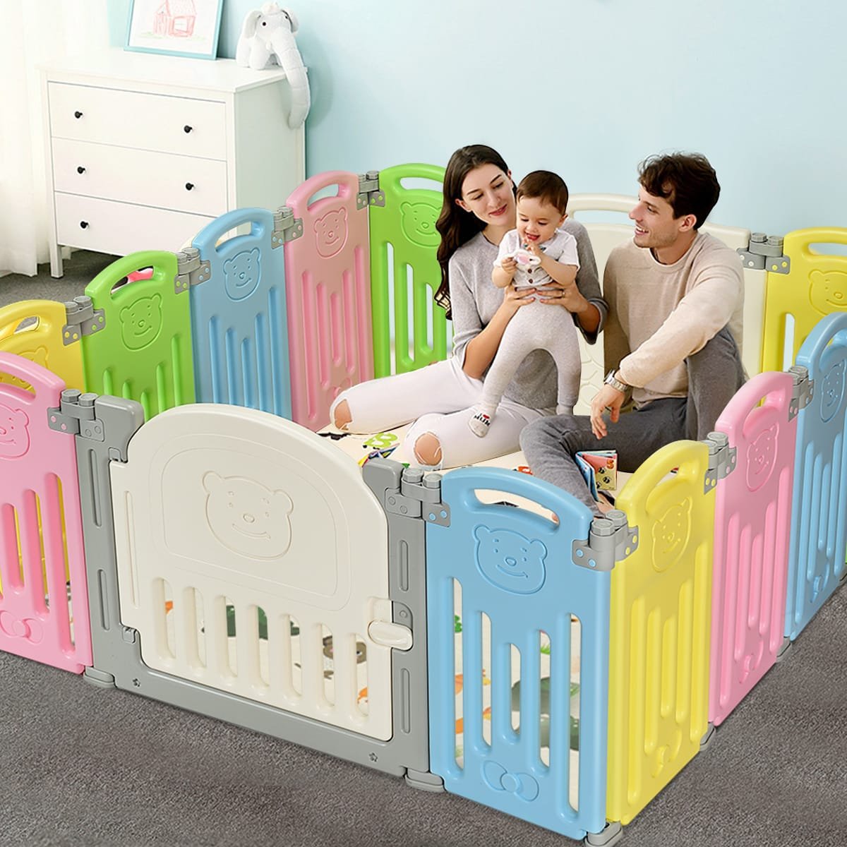Sulankstomas vaikiškas žaidimų aptvaras su apsauga (Spalvotas)