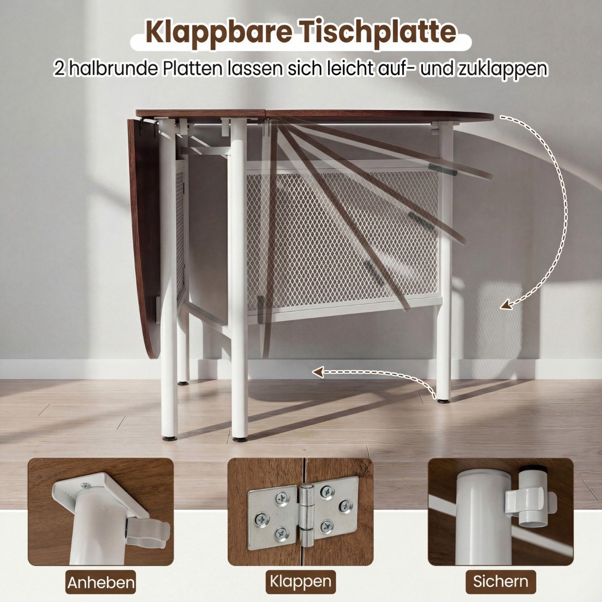 Vietą taupantis sulankstomas valgomasis stalas 6-8 asmenims (Ruda + Juoda)