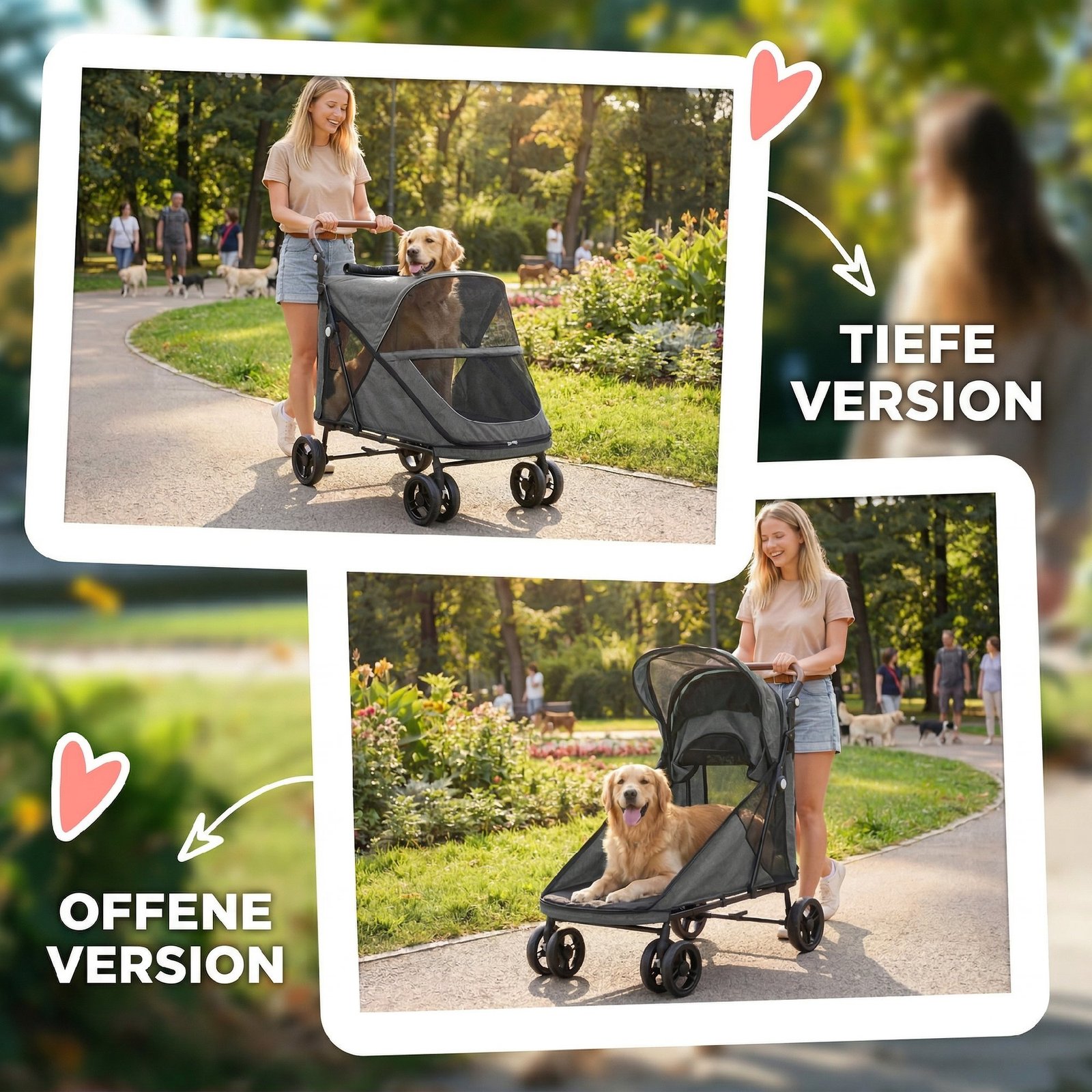 ✔ Tvirtas metalinis rėmas užtikrina stabilų ir patvarų palaikymą šiam vežimėliui šunims