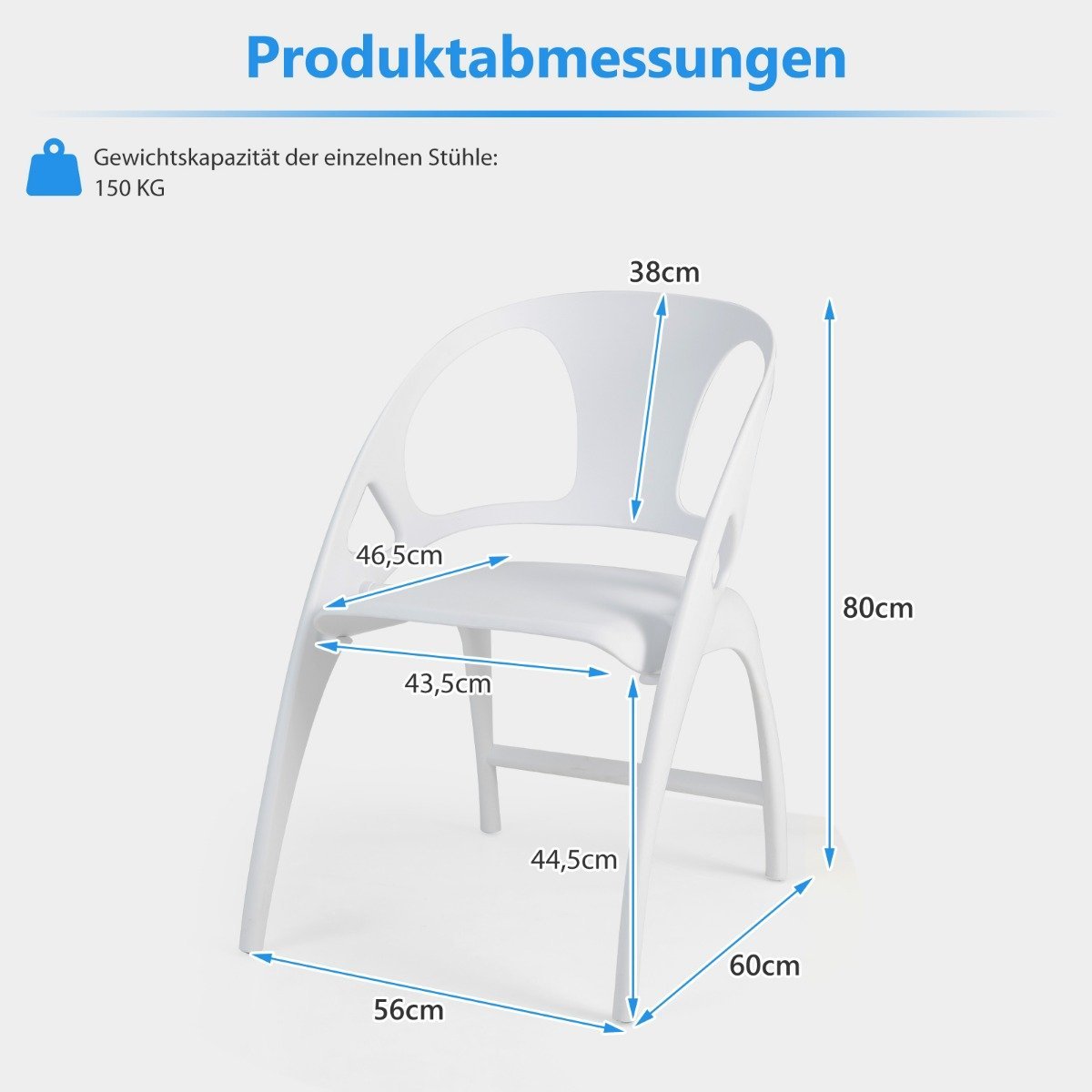- Svorio talpa: 150 kg (viena kėdė)