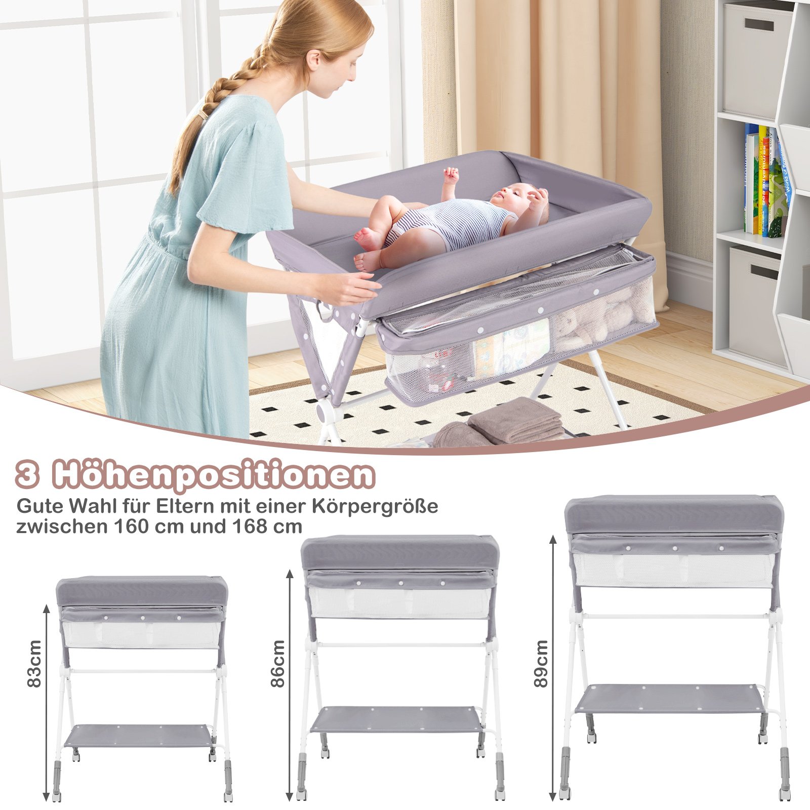 - Daugiafunkcinis dizainas su 3 reguliuojamais aukščiais, užtikrinantis komfortą tėvams.