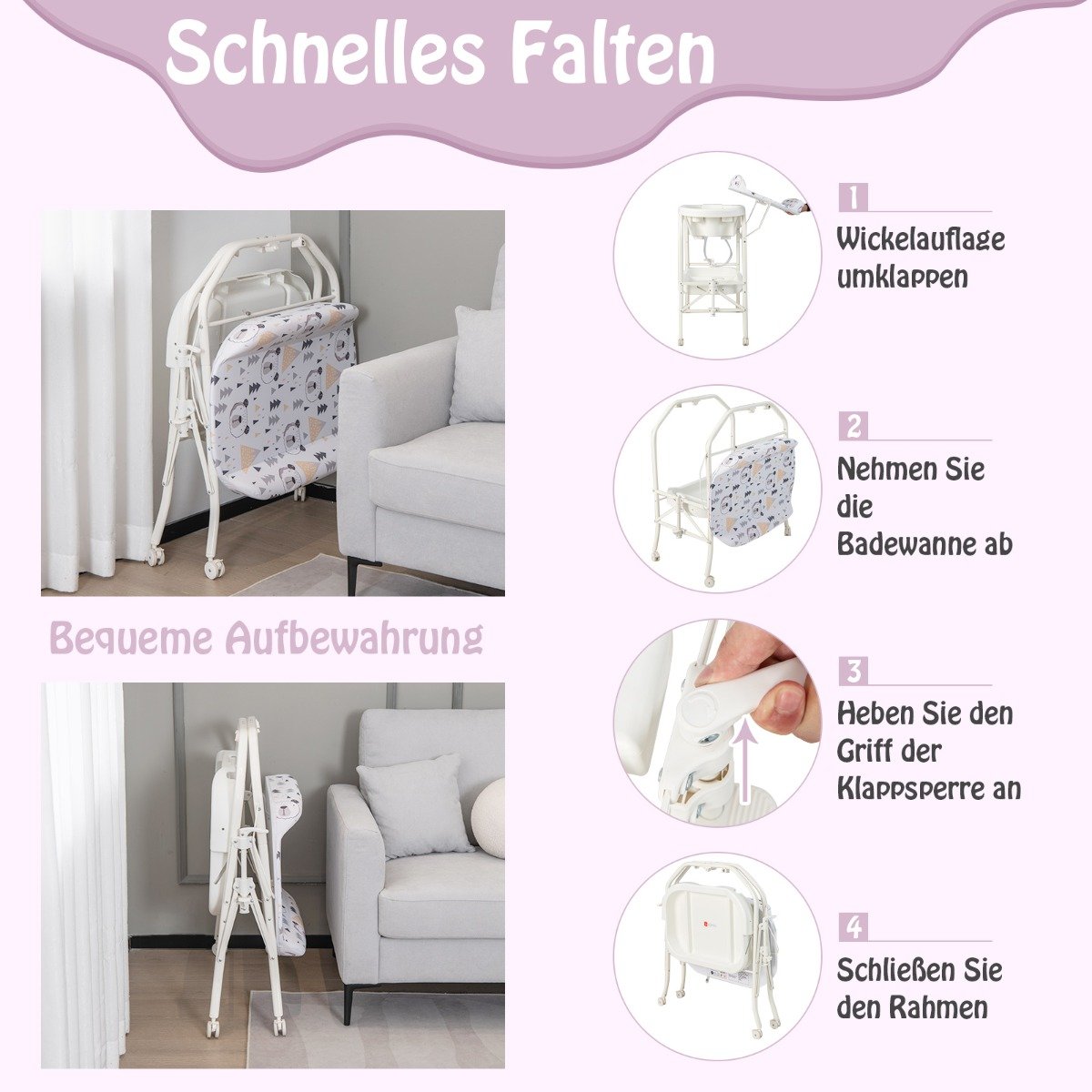 Sulankstomas vystymo stalas su integruota vonia (Balta)