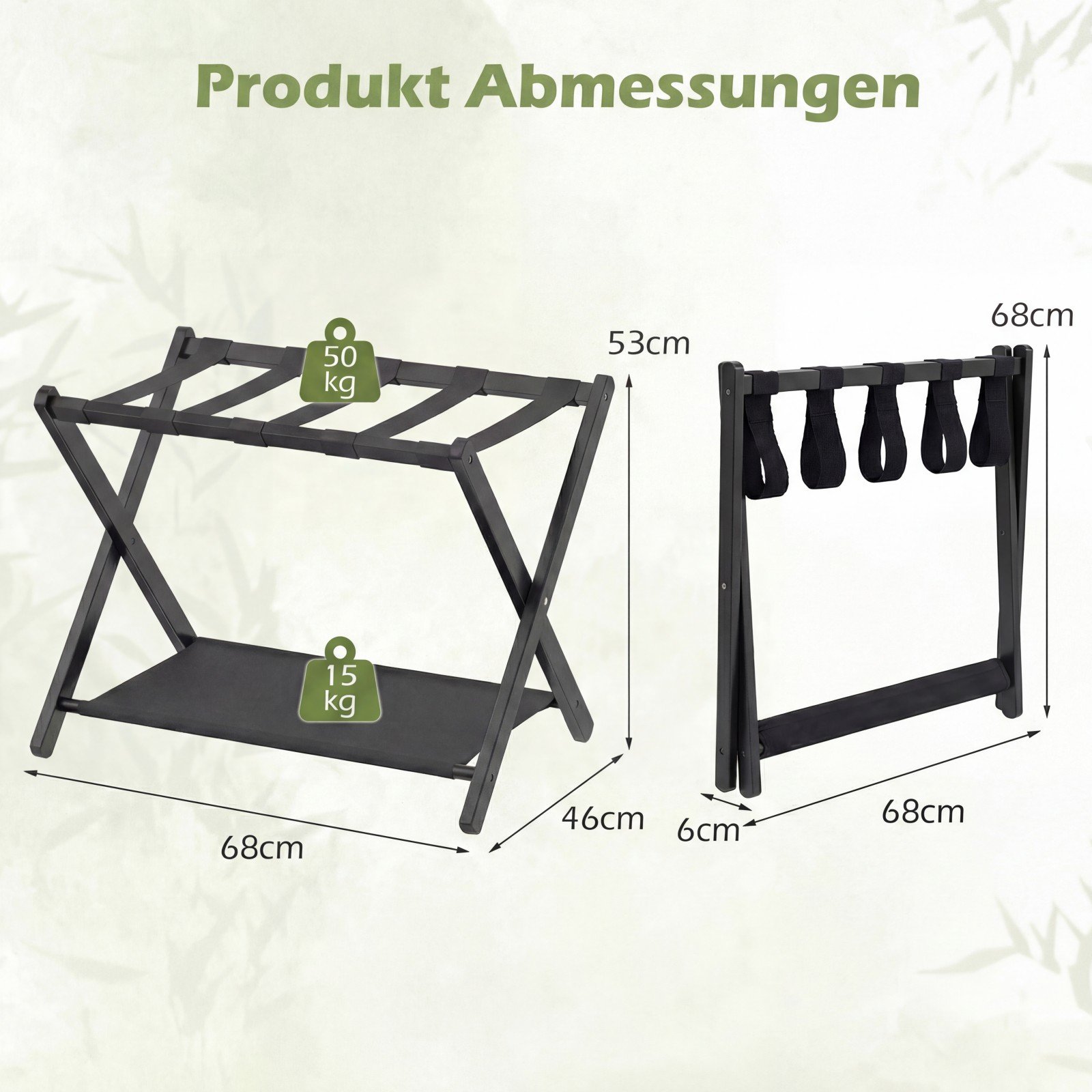 Sulankstomi bambukiniai lagaminų stovai su dviem laikymo lygiais (2 vnt.) (Juoda)
