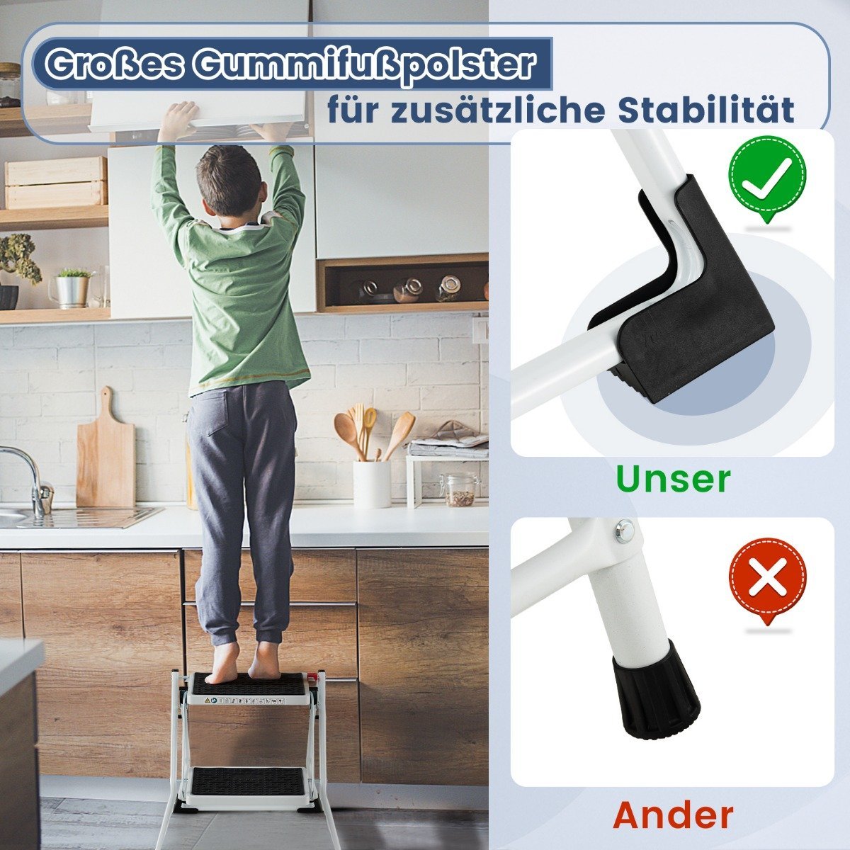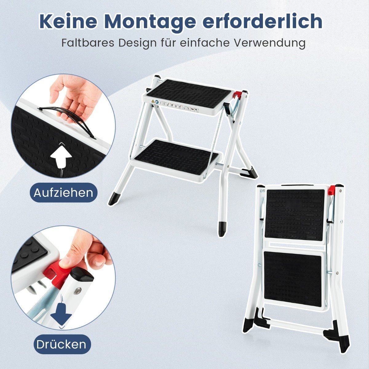 Sulankstomos 2 pakopų kopėčios 150 kg apkrovos (Juoda ir balta)