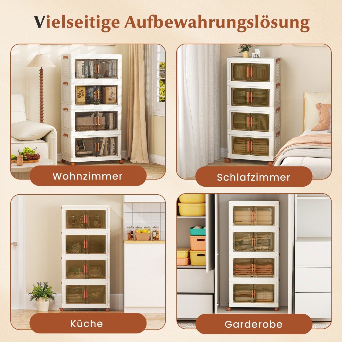 Sulankstomos 280 litrų talpos dėžės su ratukais ir skaidriomis durelėmis (Balta)