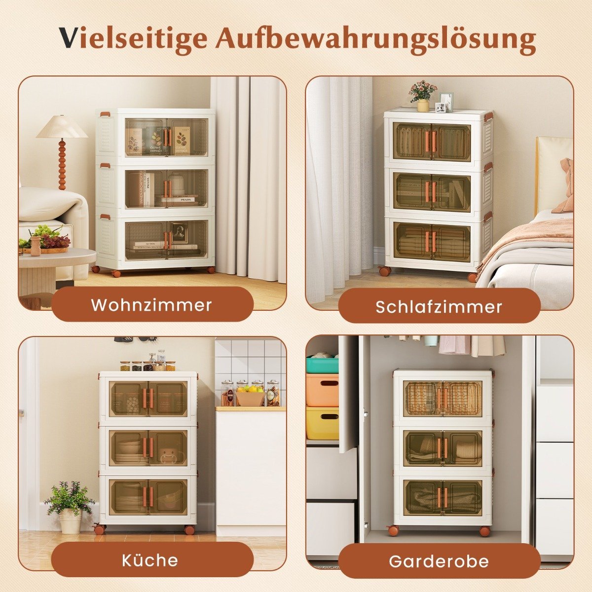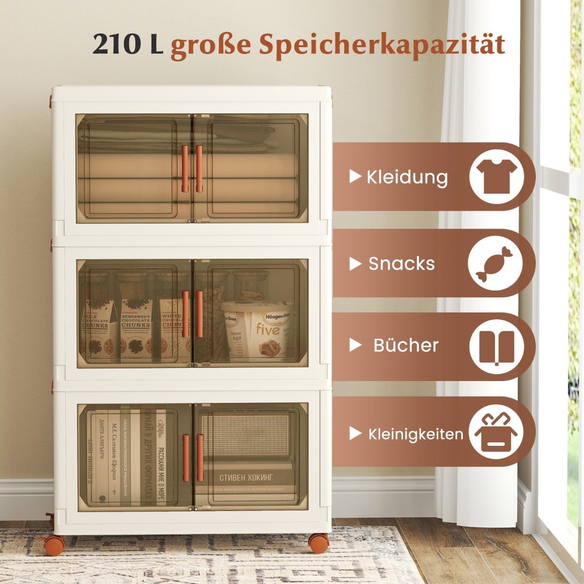 Sulankstomos laikymo dėžės su ratukais ir skaidriomis durelėmis (Balta)