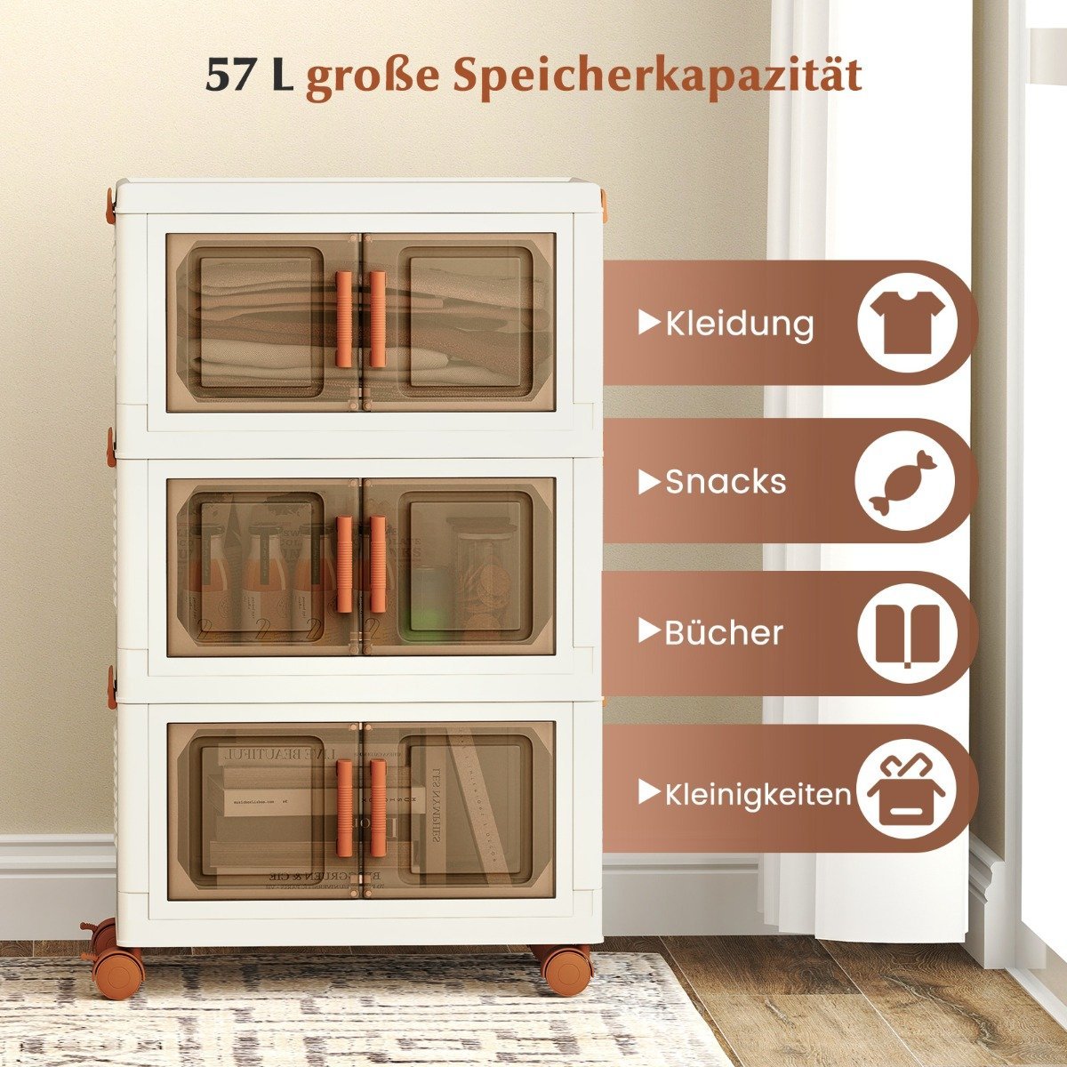 Sulankstomos plastikinės dėžės su ratukais ir skaidriomis durelėmis (Balta)