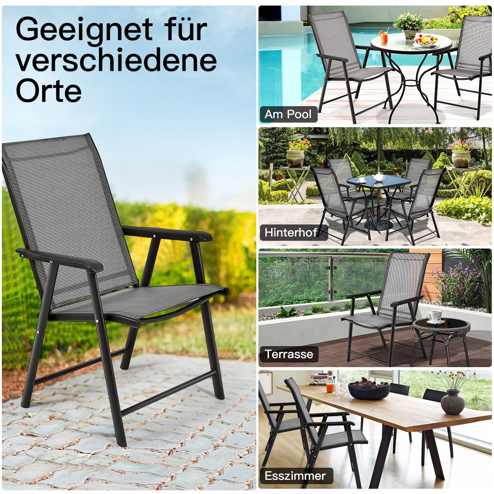 Mėgaukitės komfortu ir ilgaamžiškumu su šiuo dviejų sulankstomų lauko kėdžių komplektu. Sukurtos atlaikyti įvairias oro sąlygas ir užtikrinti maksimalų patogumą, šios kėdės puikiai tiks jūsų sodui, terasai ar stovyklavimo išvykoms.