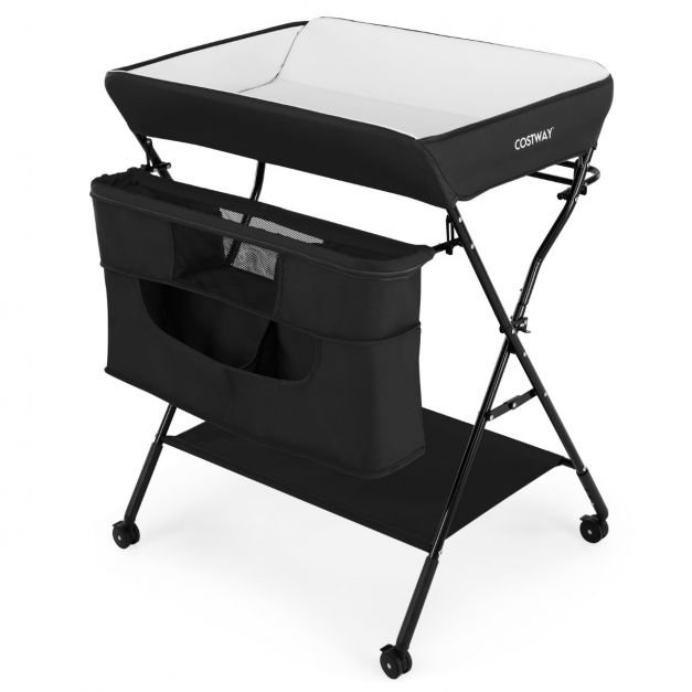 Sulenkiama vystymo stalas su ratukais (Juoda)