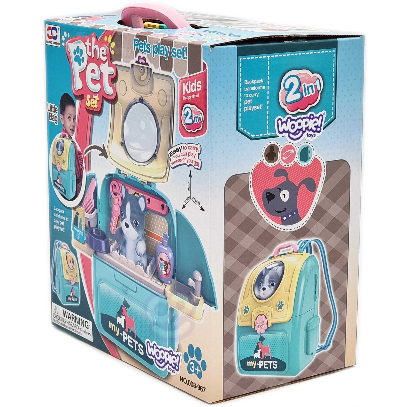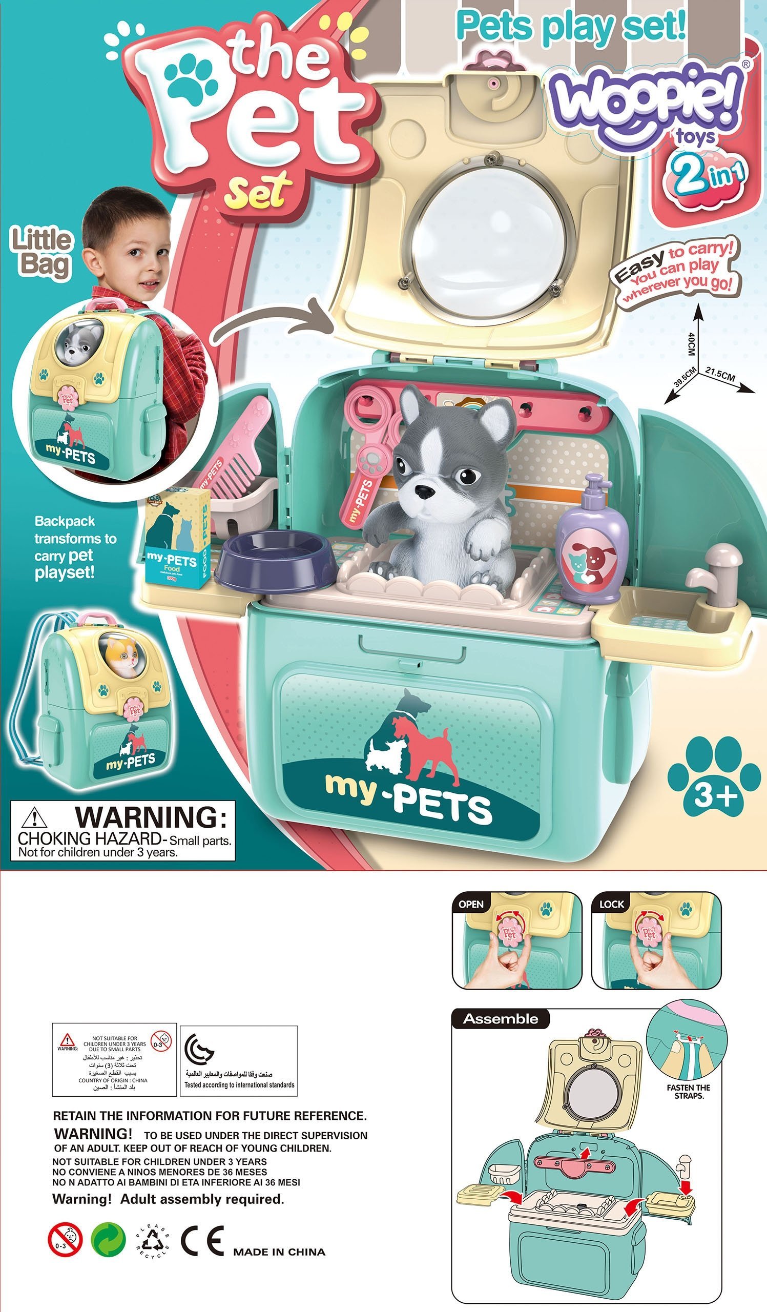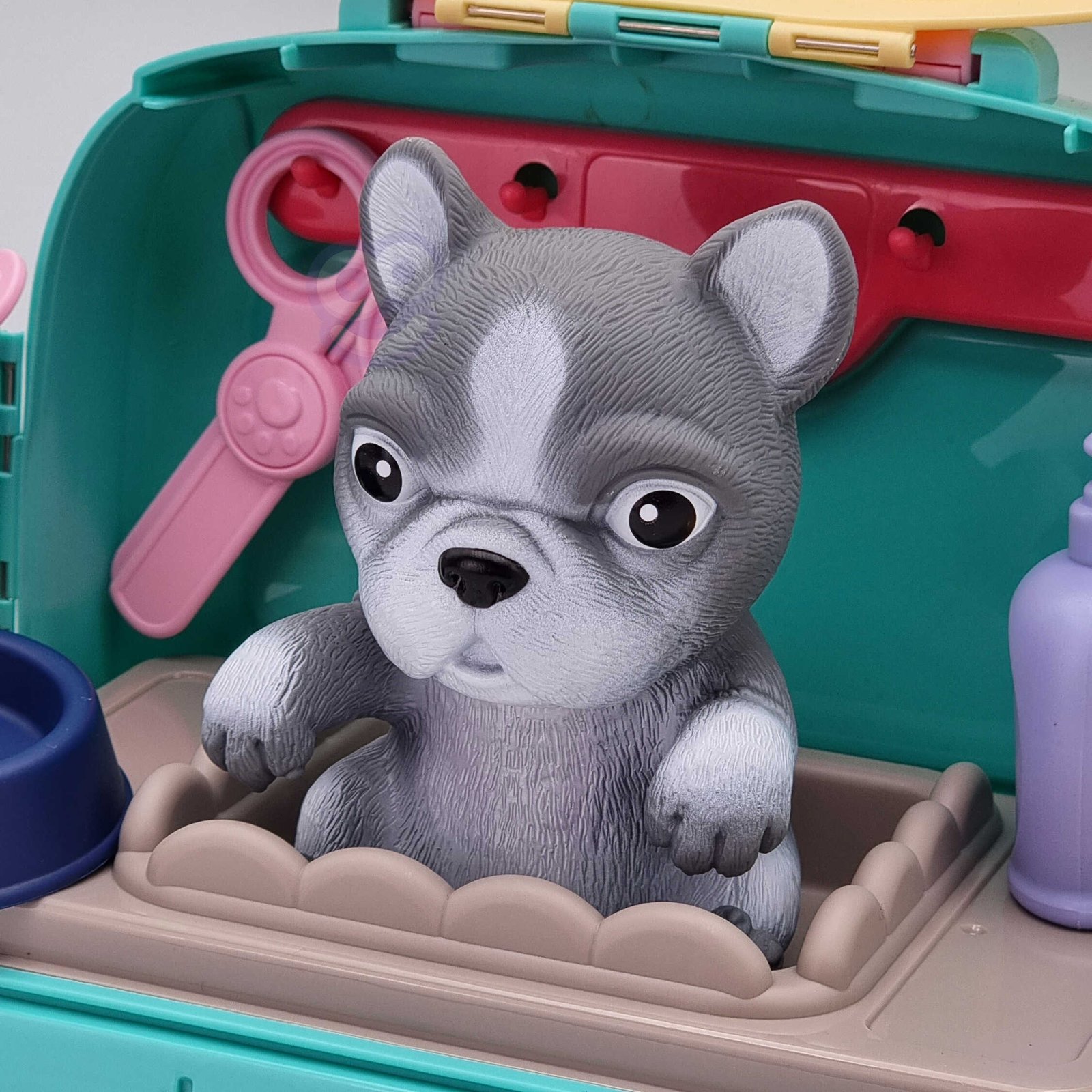 - Žaislas 2in1: gyvūnų priežiūros salonas + transporteris
