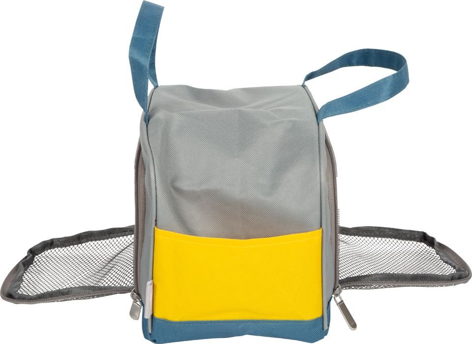 Pliušinis kačiukas su priežiūros rinkiniu krepšyje