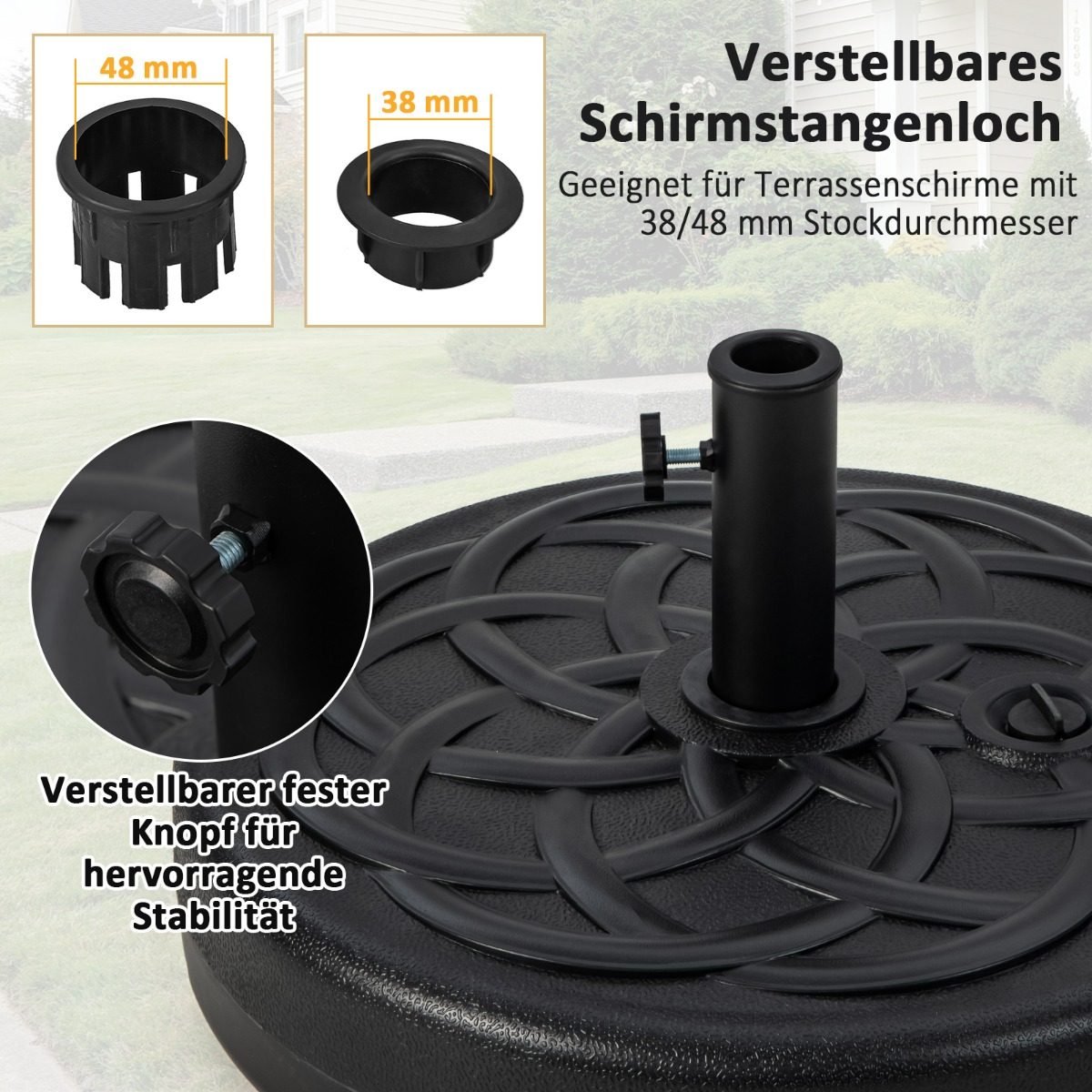 - Tinkamas skėčio stiebo skersmuo: 38 mm/48 mm