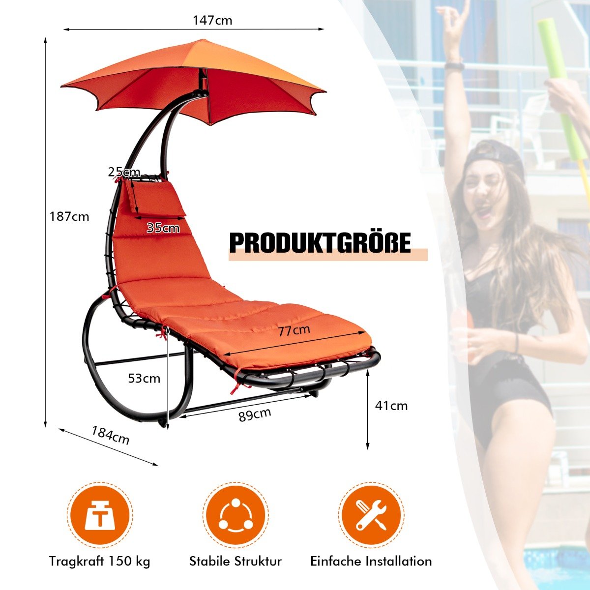 - 1 x Sūpuoklių gultas su stogeliu