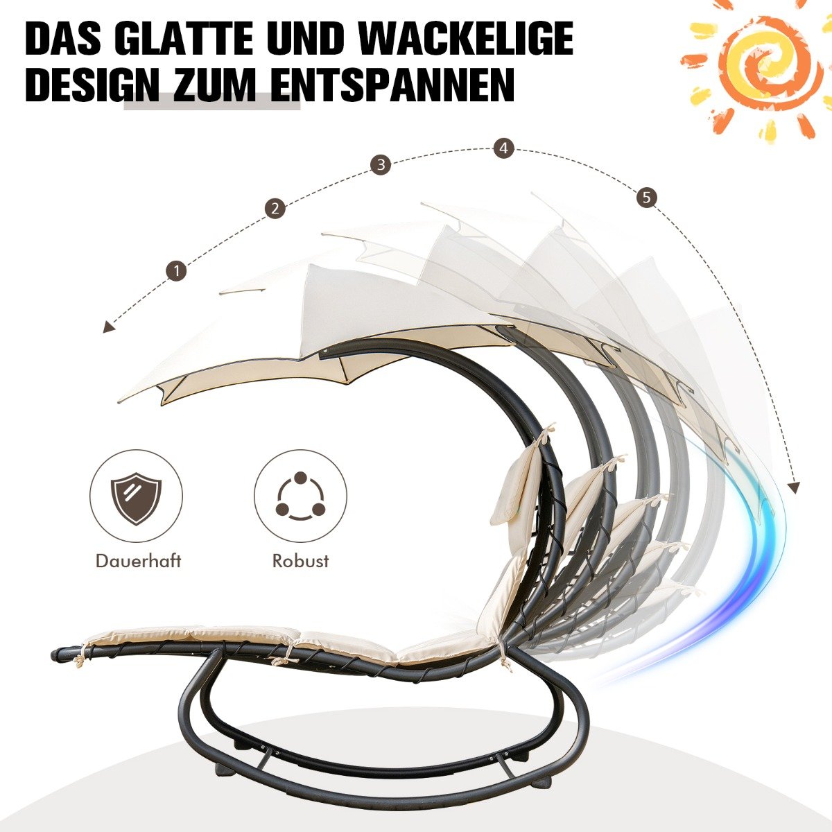Mėgaukitės atpalaiduojančiu sūpavimosi jausmu su šia itin patogia supamąja kėde. Ergonomiškai suformuotas rėmas sumažina nugaros ir stuburo apkrovą, o minkšta, paminkštinta sėdimoji dalis bei galvos atrama užtikrina išskirtinį komfortą. Tvirtas, nerūdijančio plieno rėmas su apsauga nuo apvirtimo garantuoja maksimalų stabilumą ir saugumą.