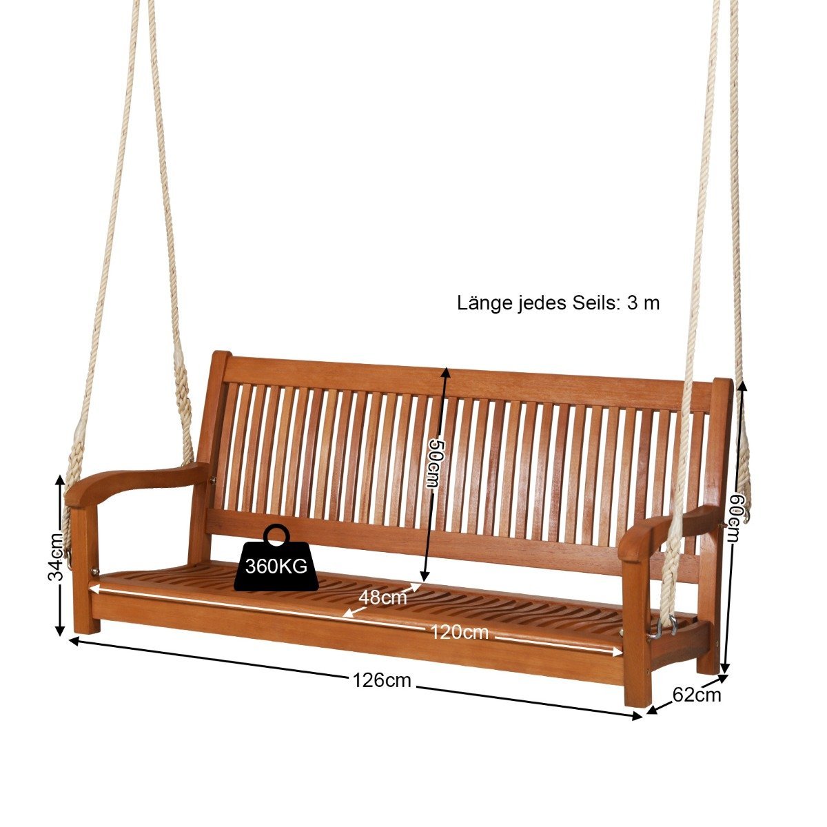 Mėgaukitės laisvalaikiu su mūsų patogiu sūpynių suoliuku! Jis skirtas dviem žmonėms, todėl galėsite atsipalaiduoti dviese. Pagamintas iš aukštos kokybės eukalipto medienos, jis yra ilgaamžis ir itin stabilus. Ergonomiška sėdynė su išlenktais porankiais ir atlošu užtikrina maksimalų komfortą. Tvirti jutiniai lynai garantuoja saugų sūpavimąsi. Dėl elegantiško dizaino suoliukas puikiai papuoš bet kokią erdvę – tiek viduje, tiek lauke.