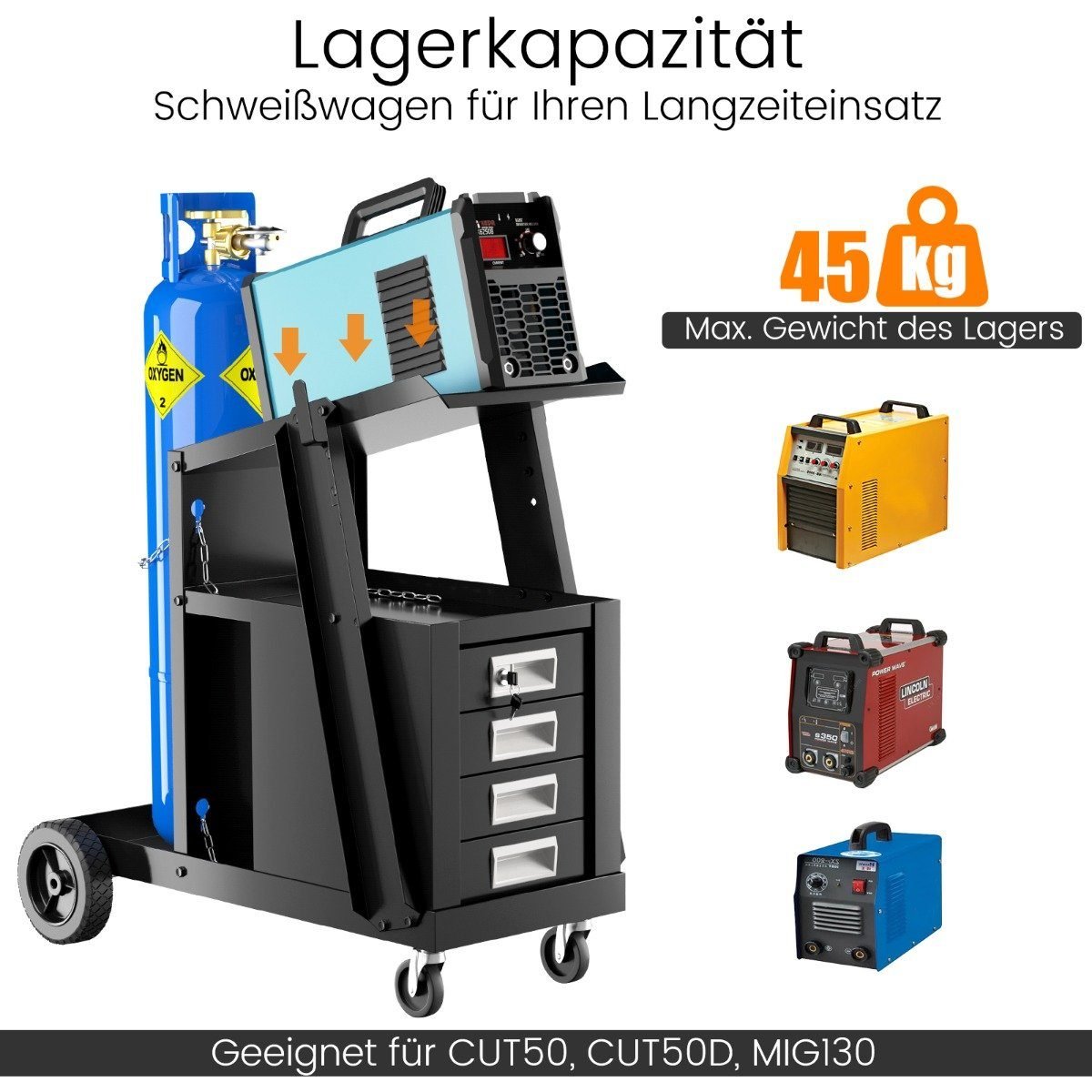 Suvirinimo vežimėlis su keturiais stalčiais (Juoda)