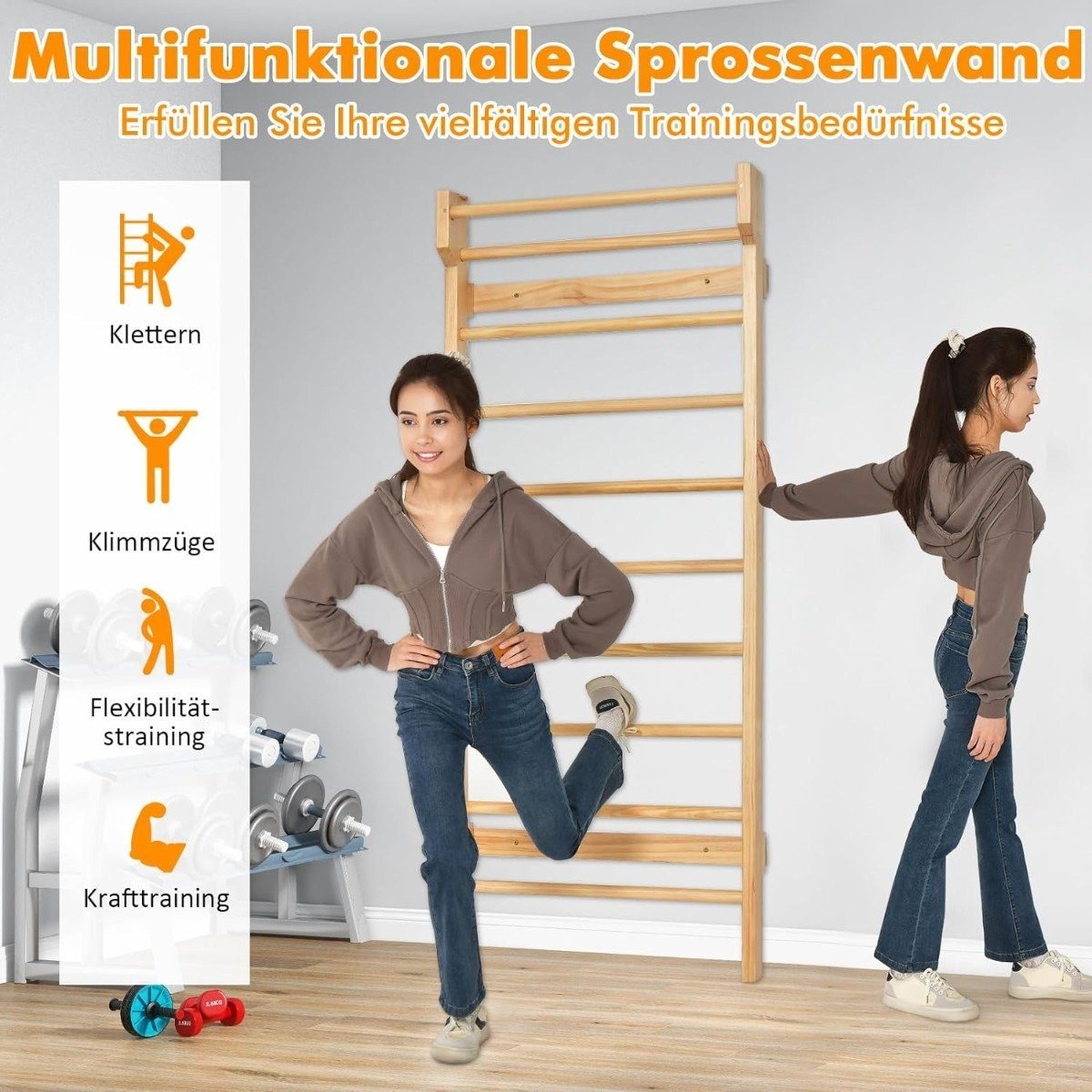 Ši tvirta gimnastikos sienelė, pagaminta iš aukštos kokybės pušies medienos, puikiai papildys bet kurią namų sporto erdvę ar vaikų kambarį. Idealiai tinkanti įvairiems jėgos, lankstumo ir koordinacijos pratimams, ji lengvai ir stabiliai montuojama prie sienos, užtikrinant maksimalų saugumą. Dėl 10 tvirtų laiptelių ir specialiai prisitraukimams pritaikyto išsikišusio viršutinio skersinio, ši sienelė puikiai tinka tiek vaikams, tiek suaugusiesiems.