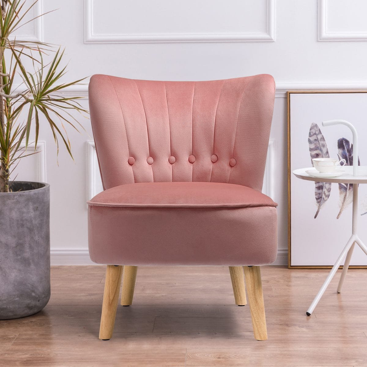 Svetainės paminkštinta kėdė su atlošu (Rožinė)
