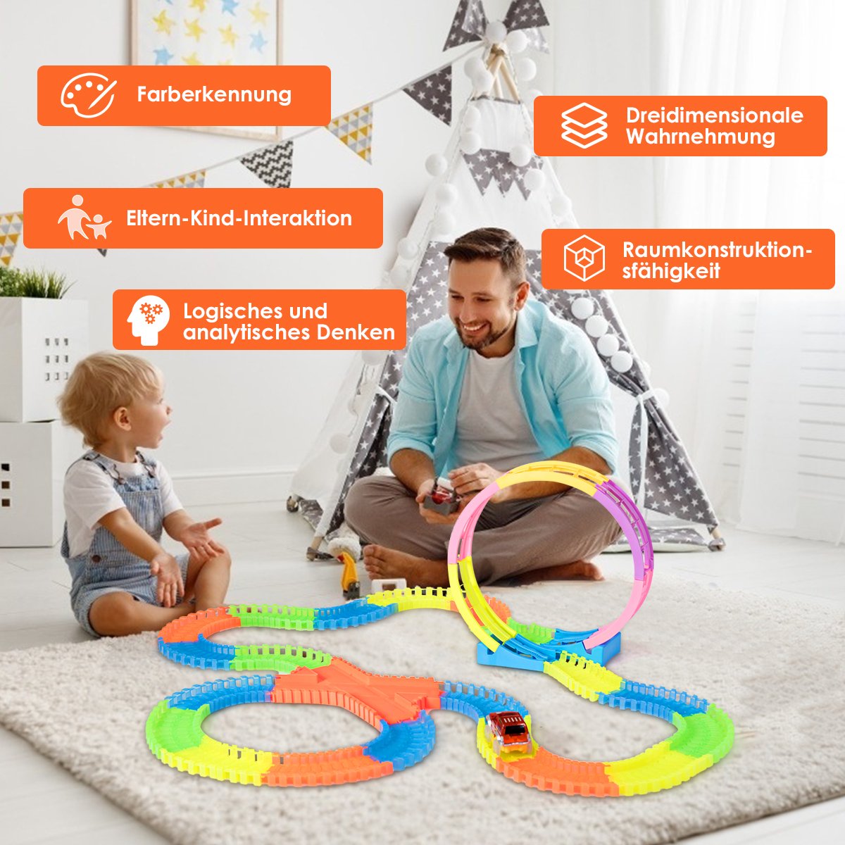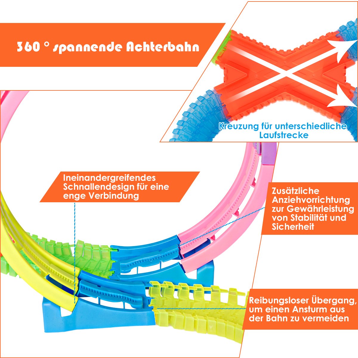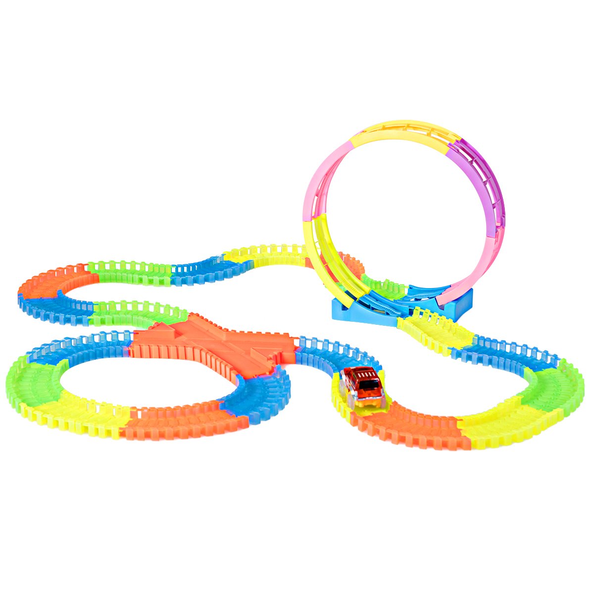 Atraskite naują žaidimo dimensiją su šia nuostabia, tamsoje švytinčia lenktynių trasa! Tai ne tik žaislas, bet ir puiki priemonė lavinti vaiko motorinius įgūdžius bei kūrybiškumą. Leiskite savo vaikui tapti dizaineriu ir statyti savo svajonių lenktynių trasas.