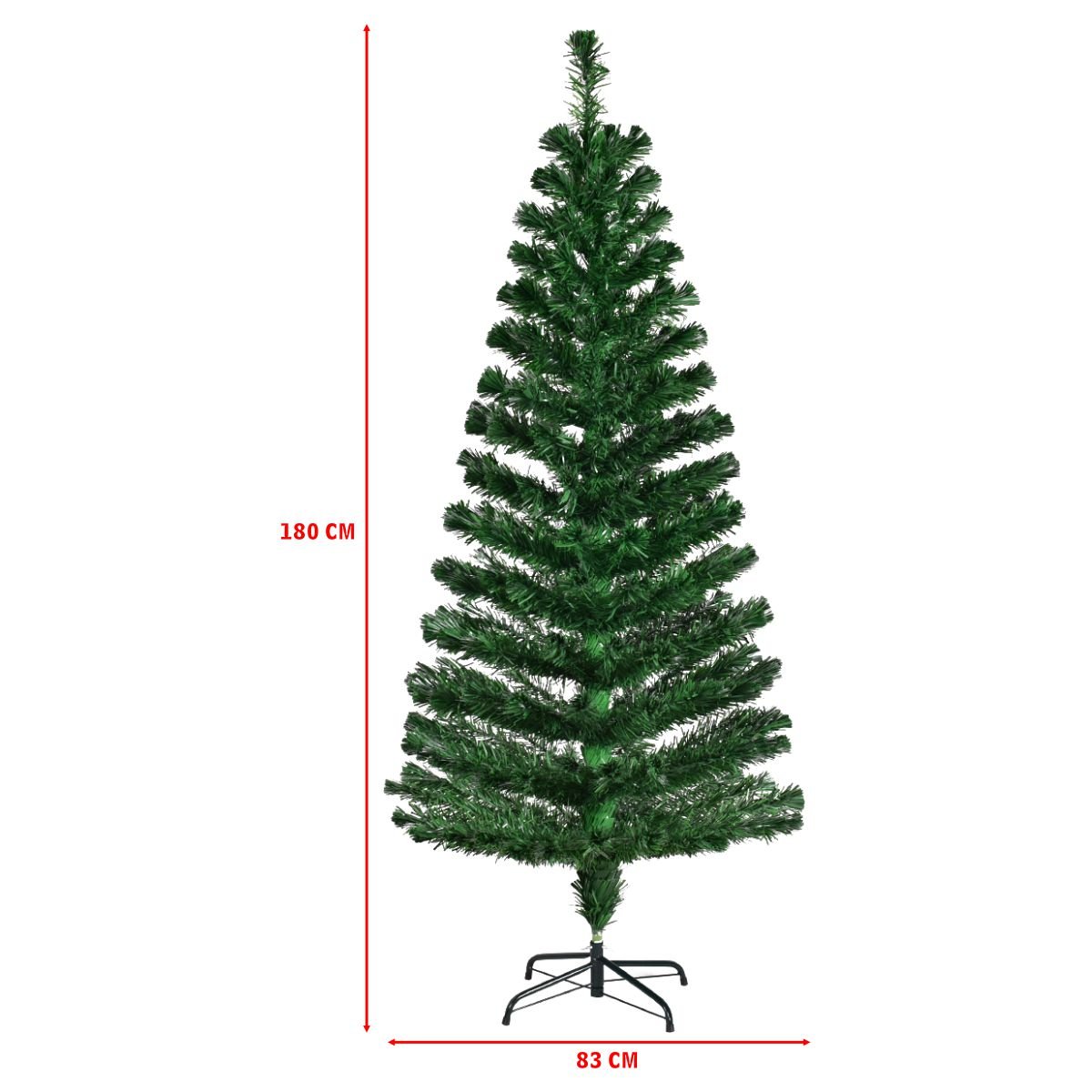 - 180 cm: 220 šakelių galiukų, stovo skersmuo 40 cm, svoris 5 kg