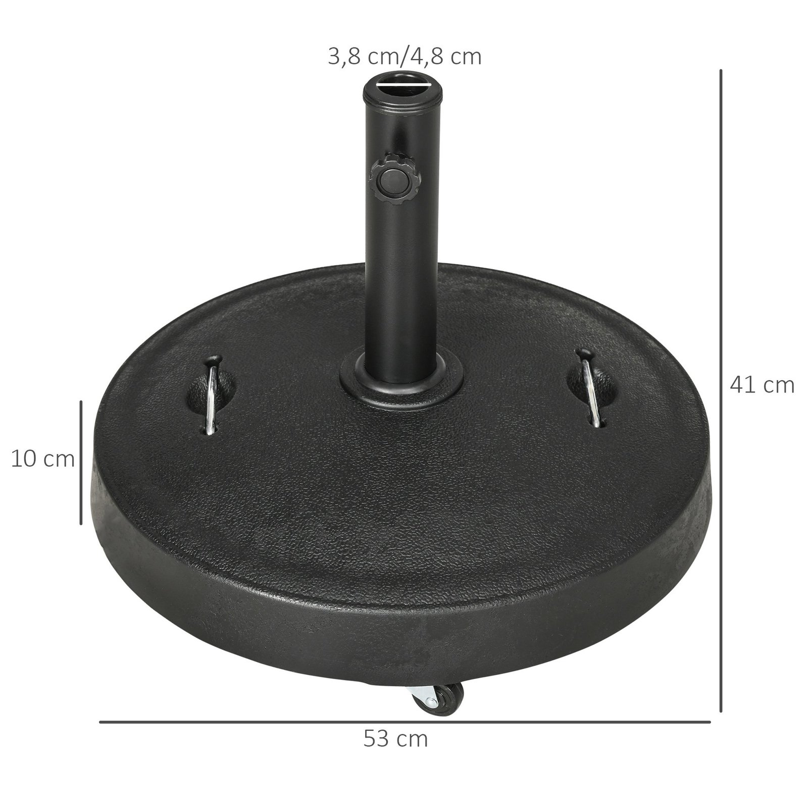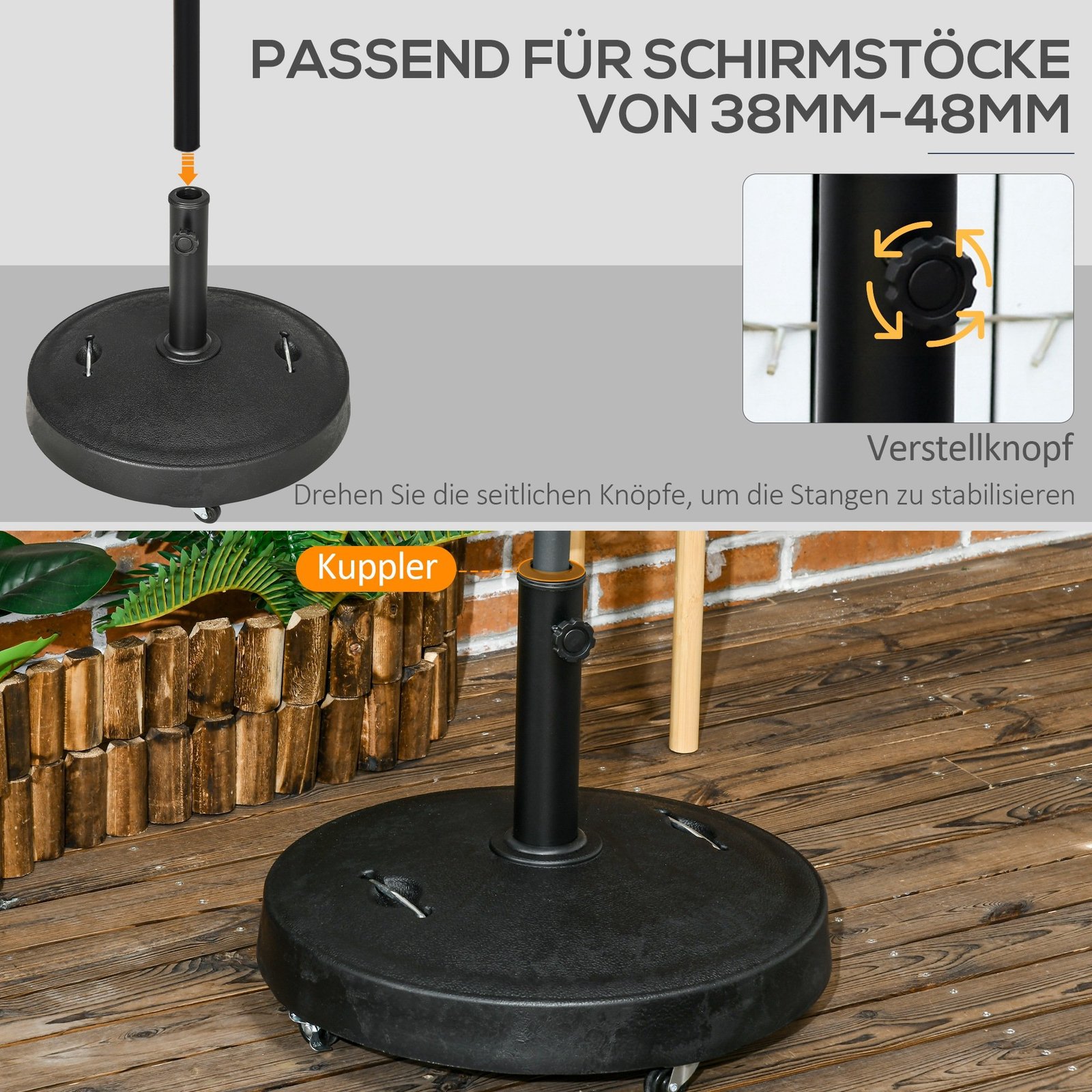 ✔ Skėčio stovas tinka sodo skėčiams, kurių stulpo skersmuo nuo Ø38mm iki Ø48mm