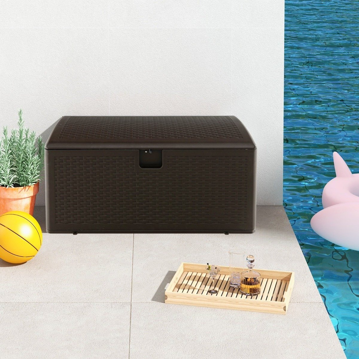 Ši lauko laikymo dėžė yra puikus sprendimas tvarkingai laikyti įvairius daiktus ir palaikyti Jūsų namų ar sodo aplinką organizuotą. Dėl didelės 276 litrų talpos, šioje dėžėje lengvai sutalpinsite sodo baldų pagalvėles, kiemo ar sodo įrankius, baseino reikmenis ir kitus daiktus.