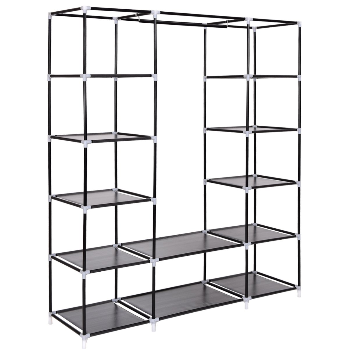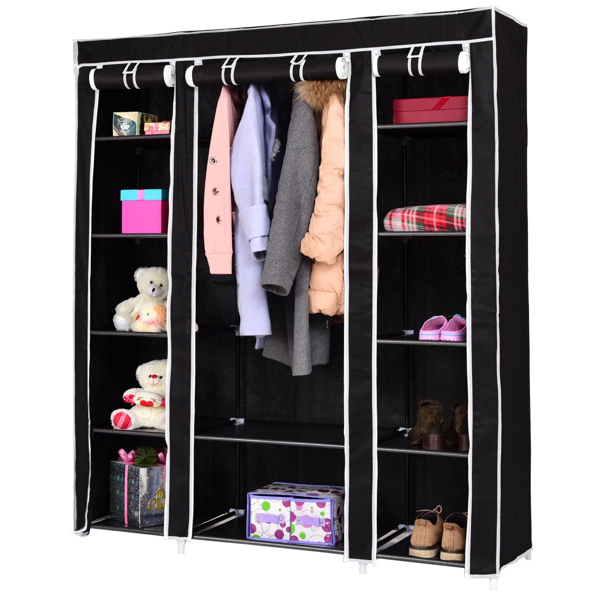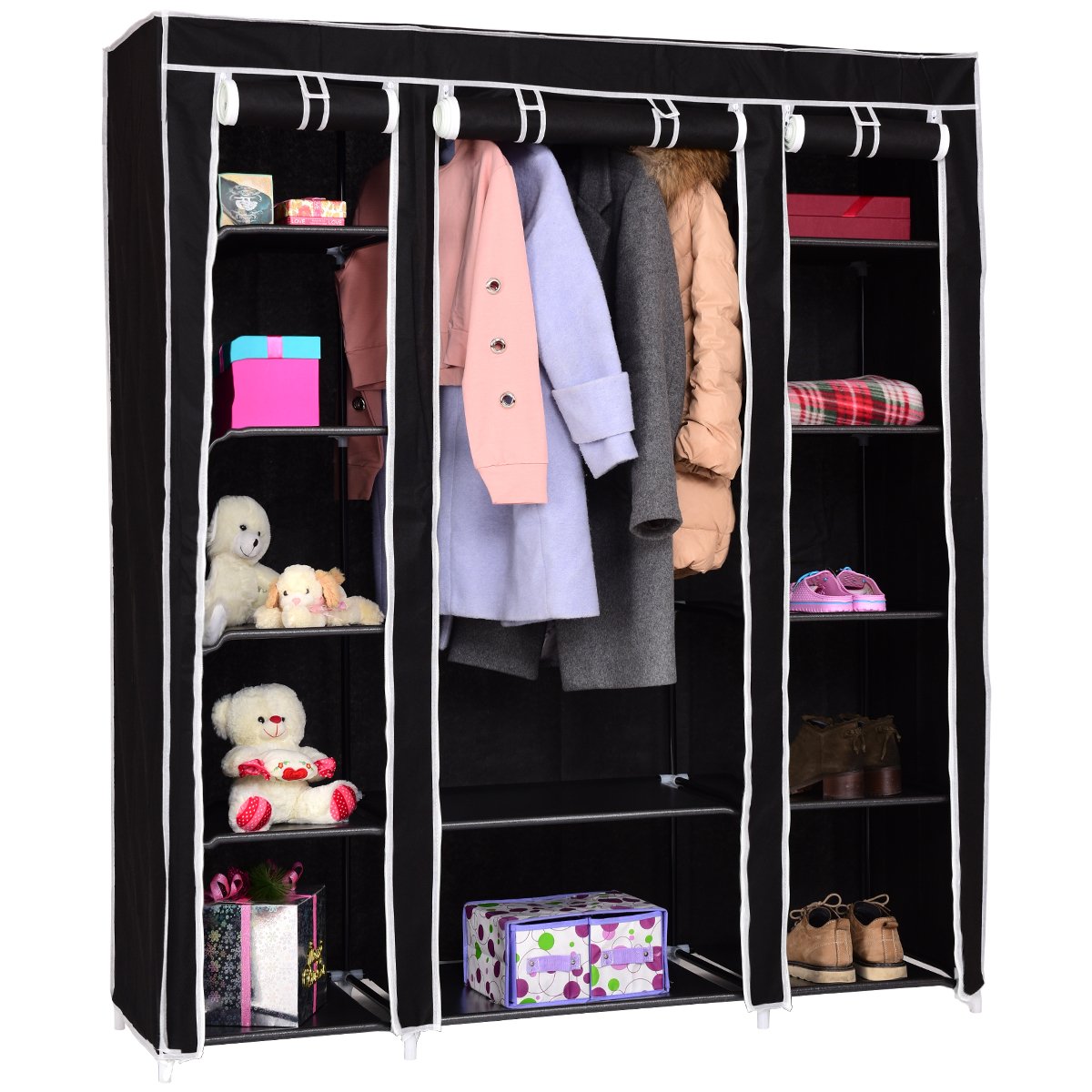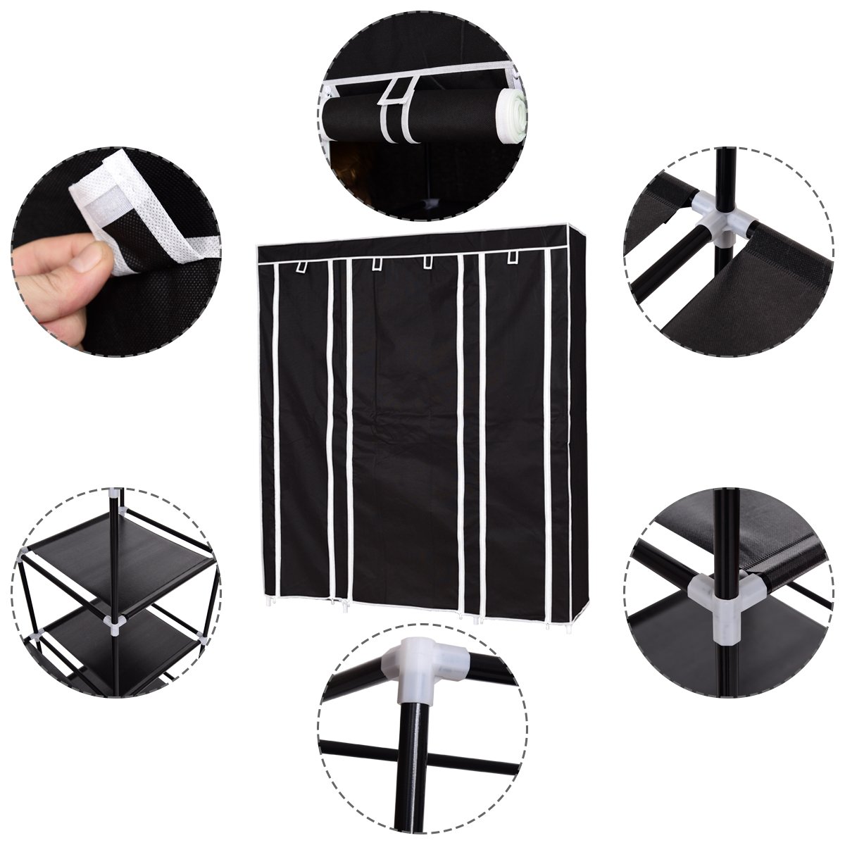 Tekstilinė sulankstoma drabužių spinta su kabykla (Juoda)